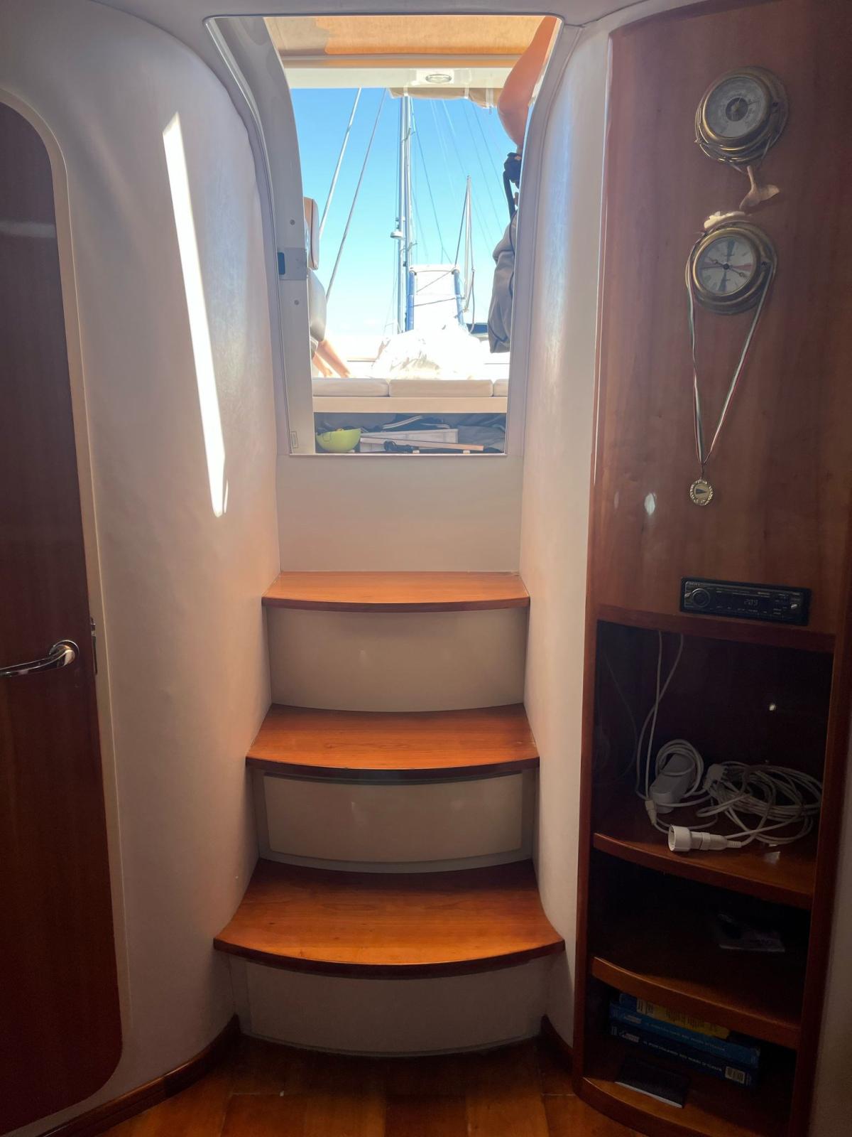 Cockpit en teck avec accès à la salle des machines