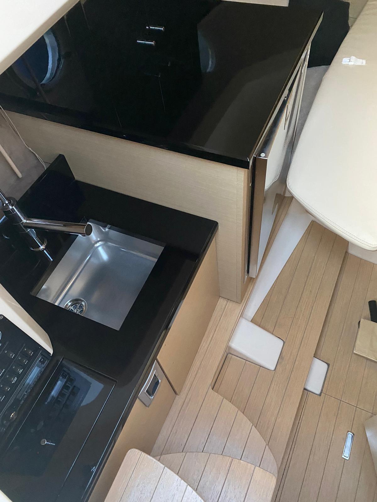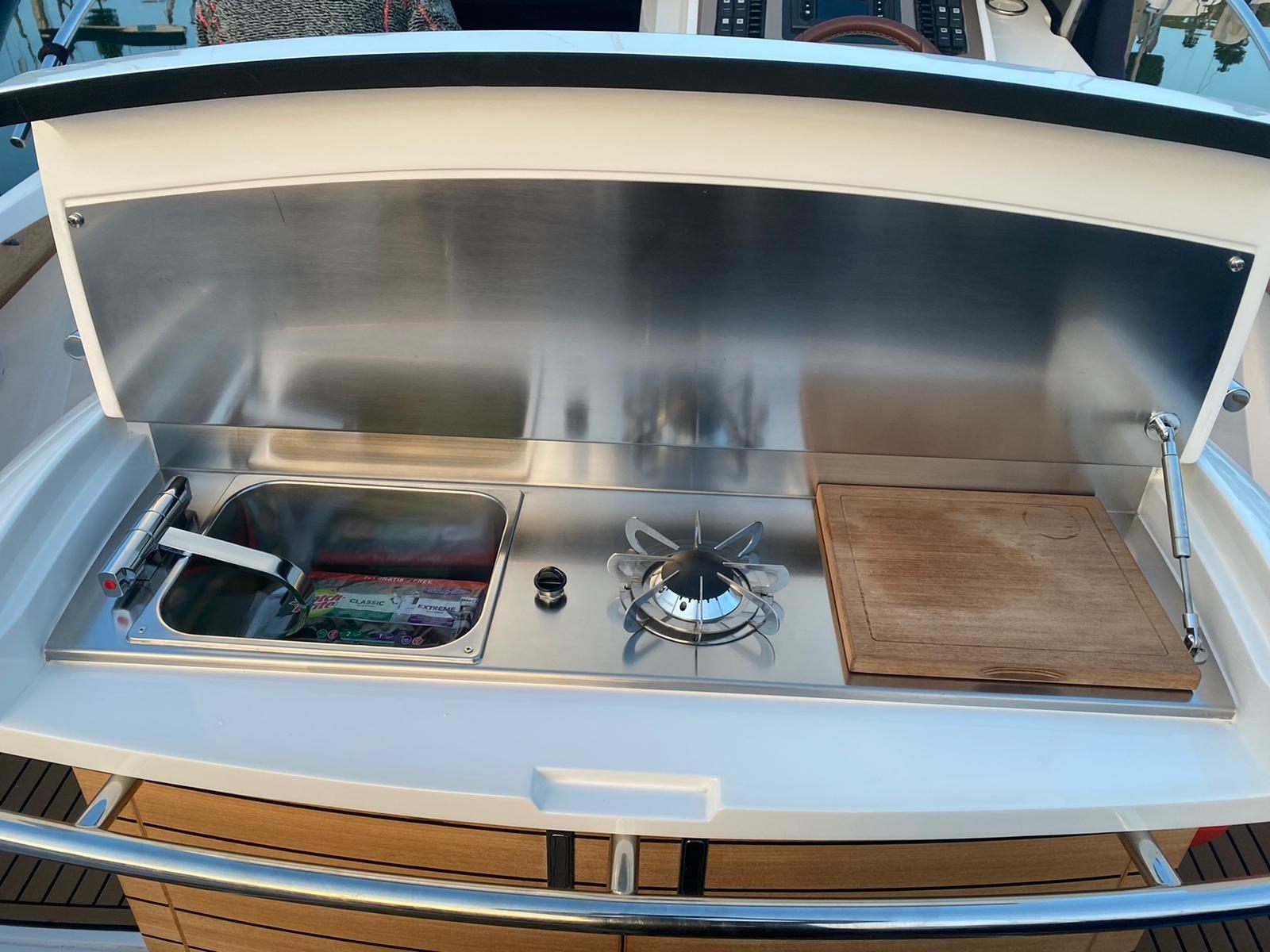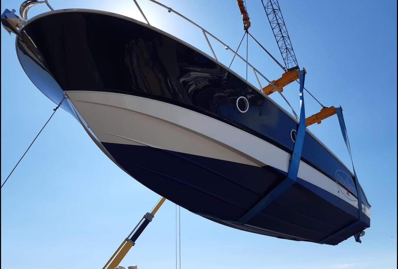 Alarme moteur, 3 Batteries, Passavant en teck, Couleur spéciale (blu verniciatura 2023), Douche de cockpit, Flaps hydrauliques, Indicateurs de flaps, Lavabo dans le cockpit, Passerelle, Plateforme arrière, Pompe de cale manuelle, Porte latérale, Cockpit en teck, Prise de quai, Connexion eau sous pression à quai, Guindeau électrique, Echelle de bain, table de cockpit, Annexe, Corne.