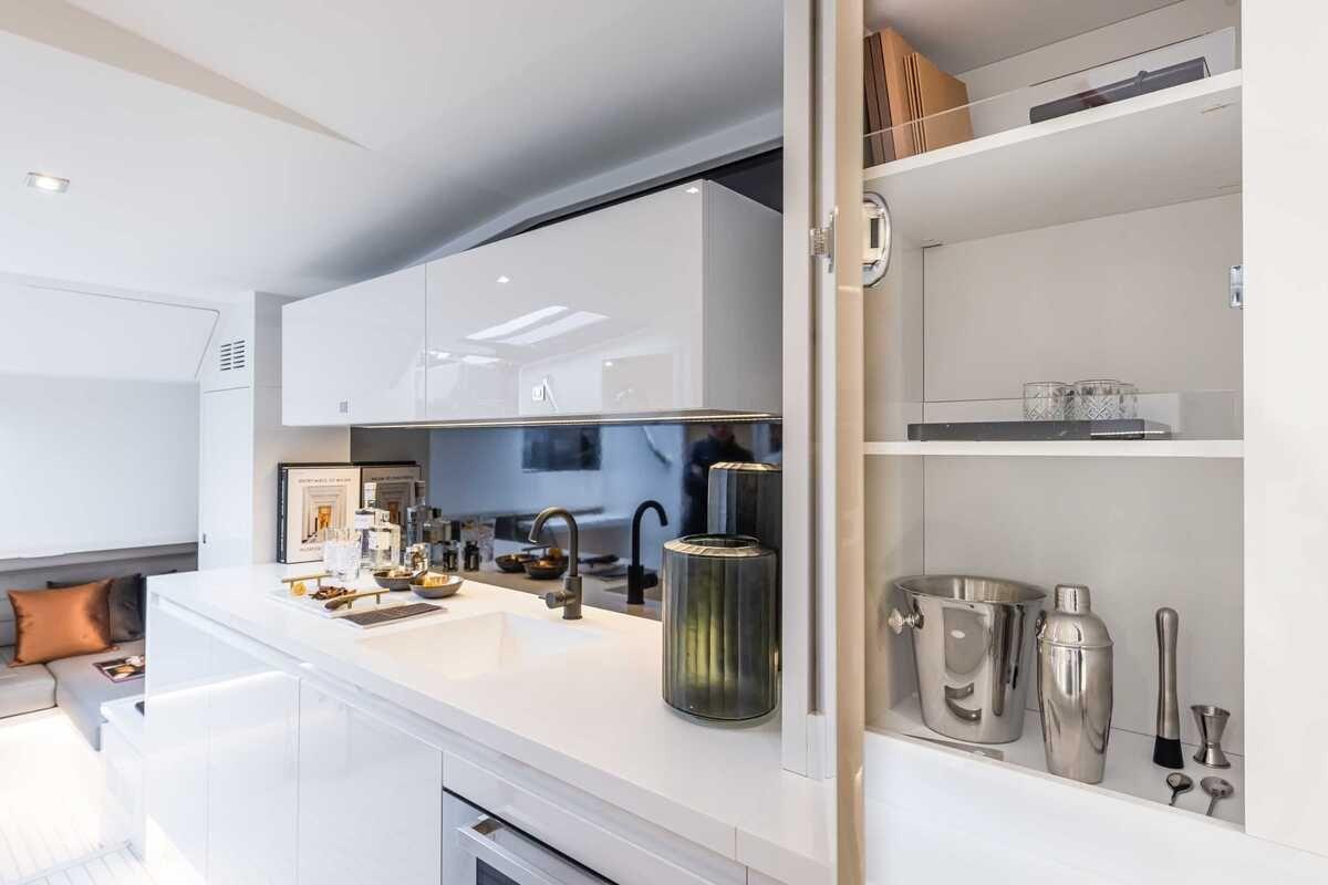 L'instrumentation de bord porte la signature prestigieuse de Garmin Marine avec la technologie EmpireBus. Le contrôle du VanDutch 56 se fait à partir d'une console unique qui comprend deux écrans de 16 pouces à partir desquels vous pouvez coordonner l'ensemble de la domotique du bateau.