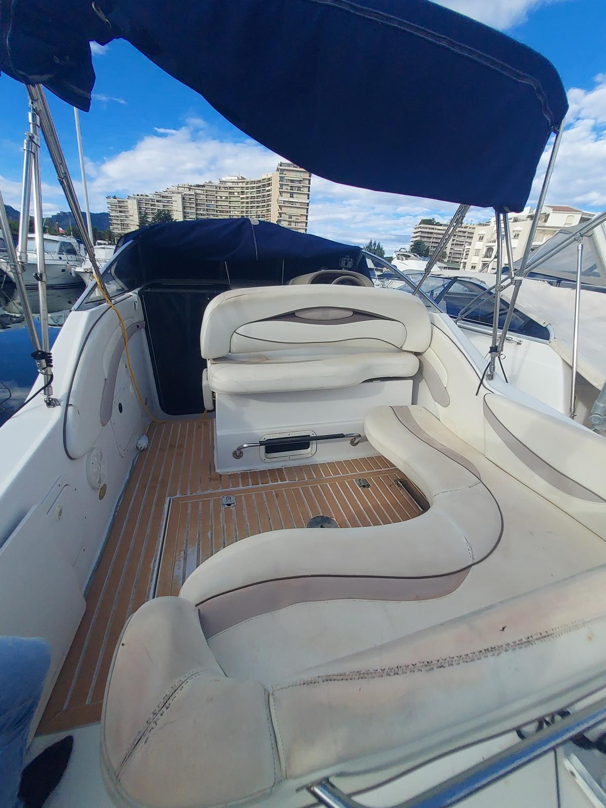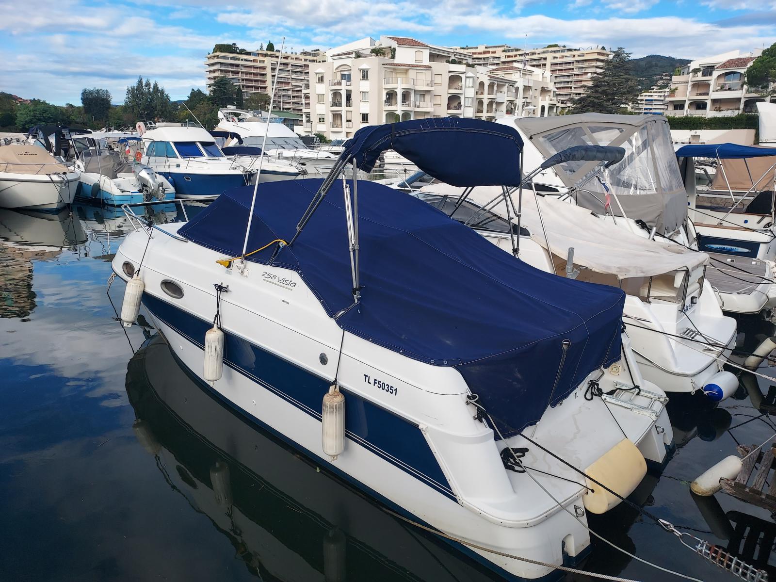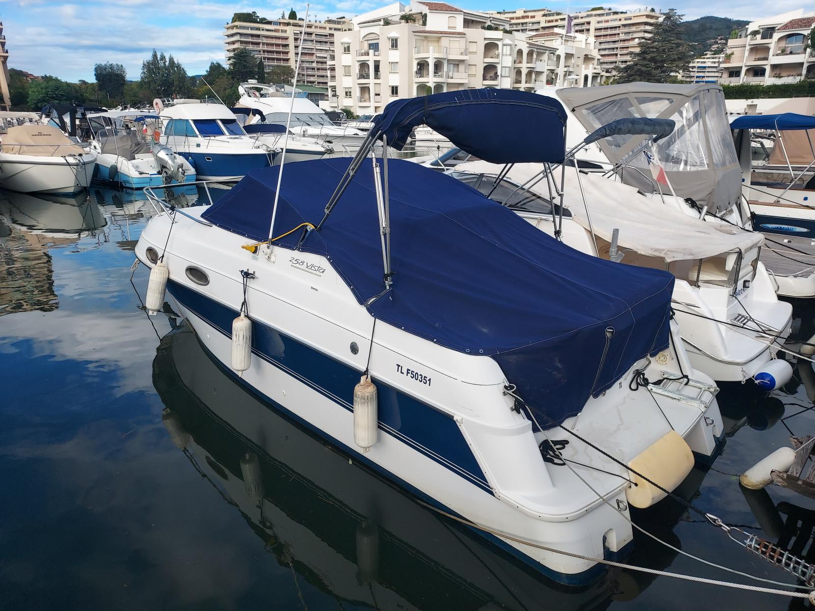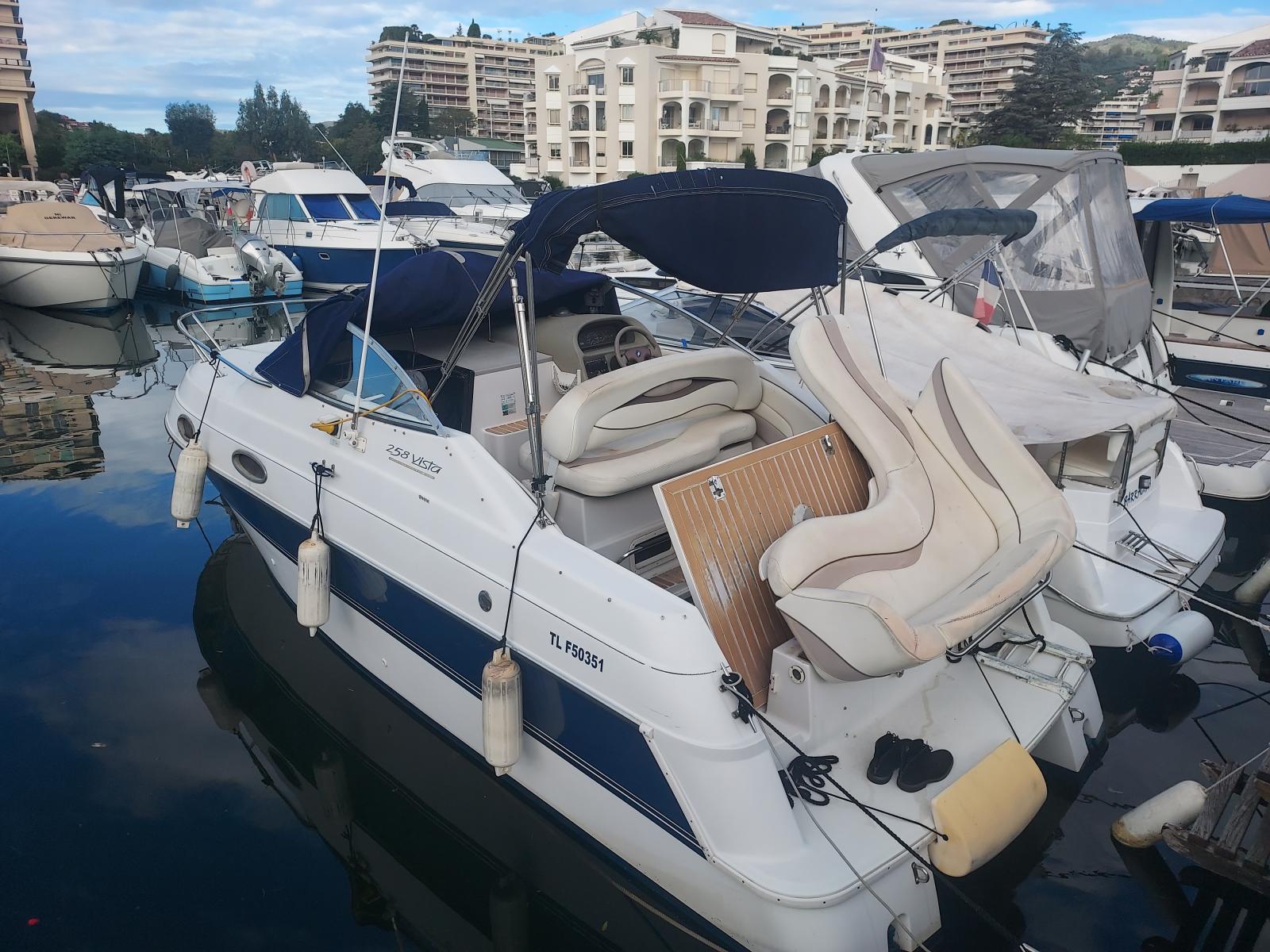 FOUR WINNS 258 VISTA Année : 1999 Longueur (m) : 7.92 Largeur (m) : 2.56 Motorisation : 280 cv IB Essence Visible : Méditerranée Pavillon : Français Chantier : FOUR WINNS USA Modèle : Vedette - Croisière Familiale - Coque Polyester - Cockpit central - Salon de pont Confort : 4 Couchages - 1 Cab. Arr. Double - 4 COUCHAGES + CARRE TRANSFORMABLE- 2 TABLES+ PIEDS Motorisation : VOLVO 5L V8 - Z-Drive- 390 Heures Carburant : Essence Equipements : Flaps - DUO PROP Electricité : 2 Batteries neuves Chargeur Auto - Circuit 220 V/12V intérieur- PRISE DE QUAI Eau : Sous-pression - Eau Chaude - GROUPE D'EAU CHAUDE 40L (RECENT) Toilettes : 1 WC Electrique - Cuve à eau noir + macerateur - 1 douche(s)mitigeur neuf + Douche de pont avec montant inox Réglable en hauteur- prise d'eau direct à quai Cuisine : Réchaud Electrique & alcool - Micro-onde - Frigo +Divers : Hifi Electronique : Centrale de navigation : - Sondeur- Loch Gps - VHF GPS + Sécurité : Navigation Hauturier - Armement complet côtier Sellerie : Taud Hiver - Taud de soleil -Taud de Camping- Bain de soleil - sellerie de cockpit en très bon état - Mouillage : Guindeau Electrique 700 W Divers : - Jupe / Pl.Forme AR-