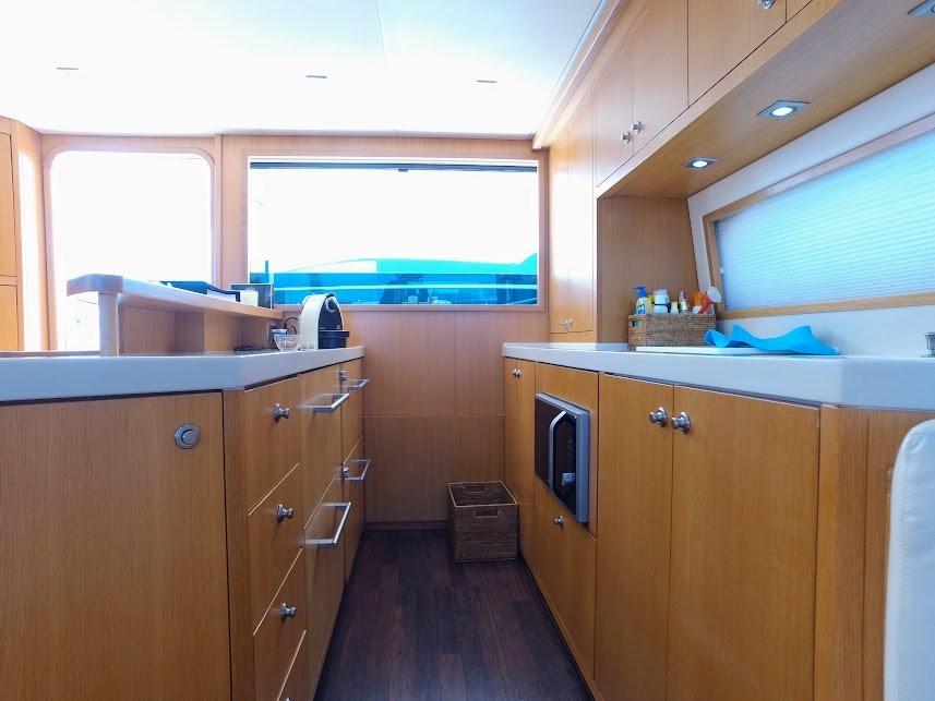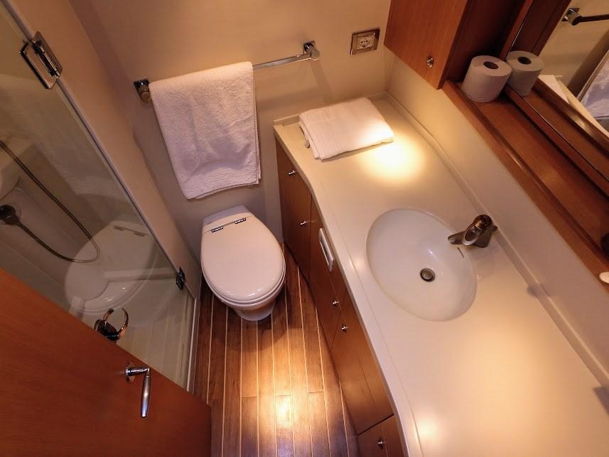 Ballon d'eau chaude, Dessalinisateur (Sea Recovery 145 lt/h), Convertisseur (Mastervolt 24/2500 W e Voltmaster 24/12 60 Amp)), Plancher intérieur en bois, Réservoir d'eau noire, 2 Toilettes électriques.