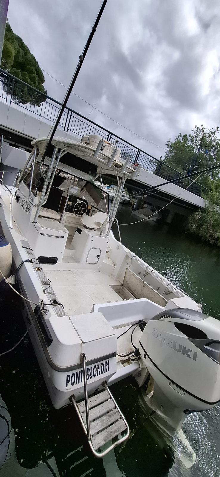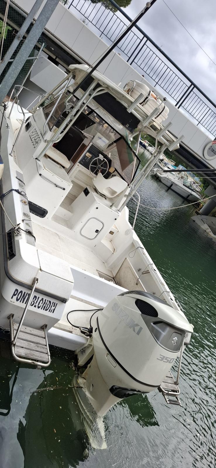 Je vends un Bayliner Trophy 2502 de 1998, en excellent état, équipé d’un moteur Suzuki 350 chevaux, neuf de 2024, avec seulement 6 heures de navigation.