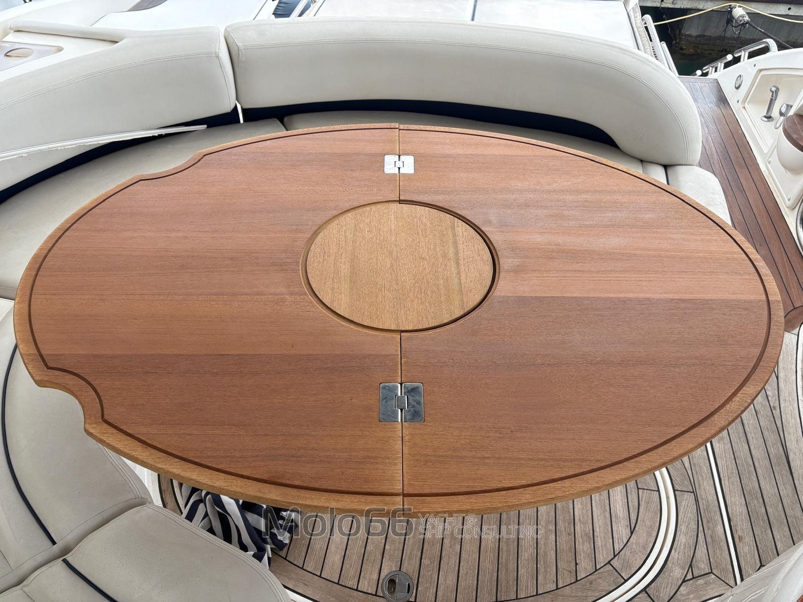 Alarme moteur, Alarme de pompe de cale, Eau sous pression, Couleur spéciale (Blu Navy), Douche de cockpit, Phare de poursuite, Flaps hydrauliques, Extincteur(s) fixe(s), Lavabo dans le cockpit, Éclairage de courtoisie, Spots sous-marins, Passerelle (Idraulic), Plateforme arrière, Pompe de cale automatique, Cockpit en teck, Prise de quai, Onduleur, Rollbar, Guindeau électrique, Echelle de bain, table de cockpit, Corne, Winch électrique avant.