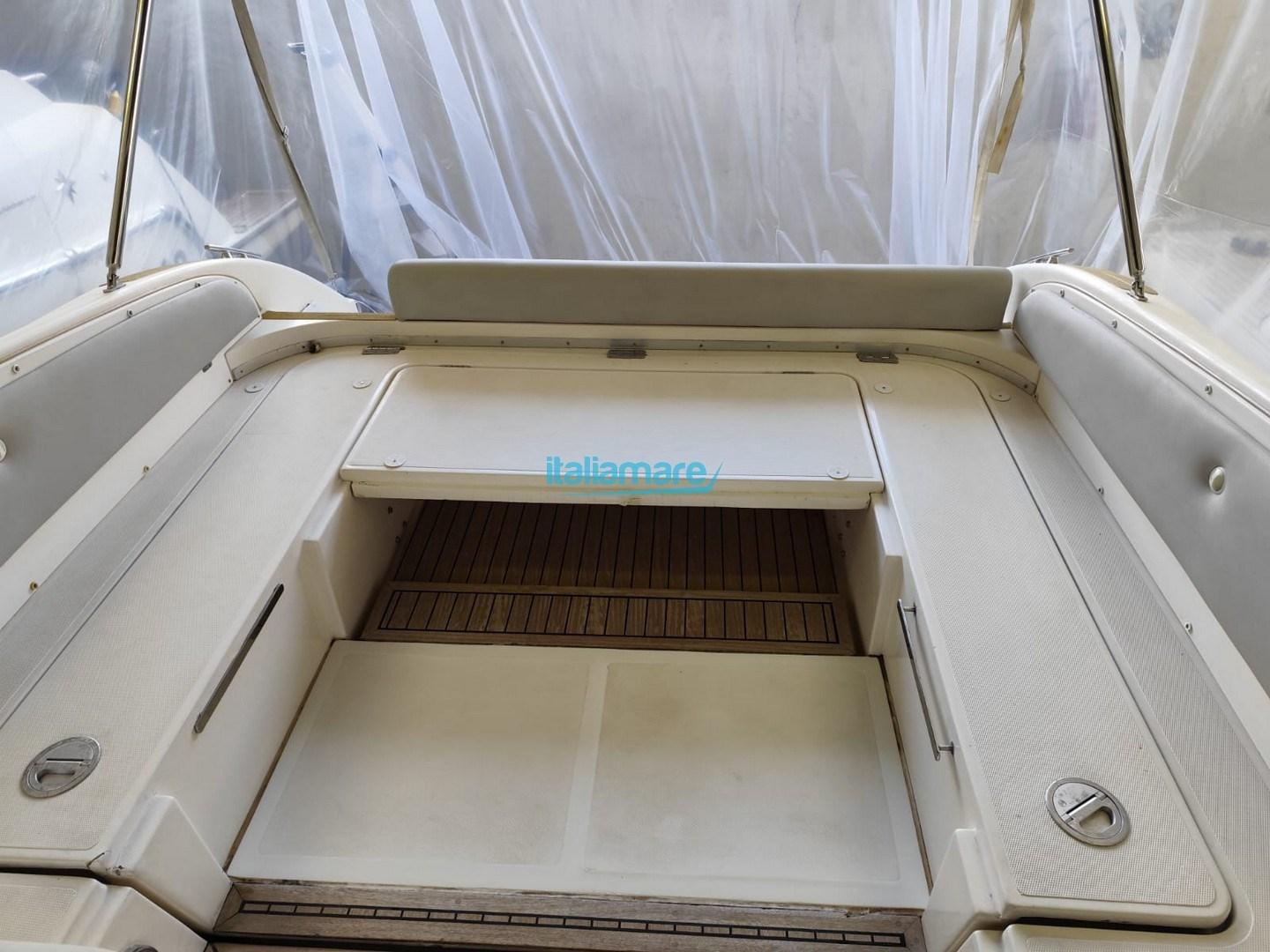 Alarme moteur, 2 Batteries, Passavant en teck, Couleur spéciale (grigio metallizzato), Douche de cockpit, Flaps électriques, Éclairage de courtoisie, Plateforme arrière, Pompe de cale automatique, Cockpit en teck, Prise de quai, Rollbar, Guindeau électrique, Echelle de bain, table de cockpit.