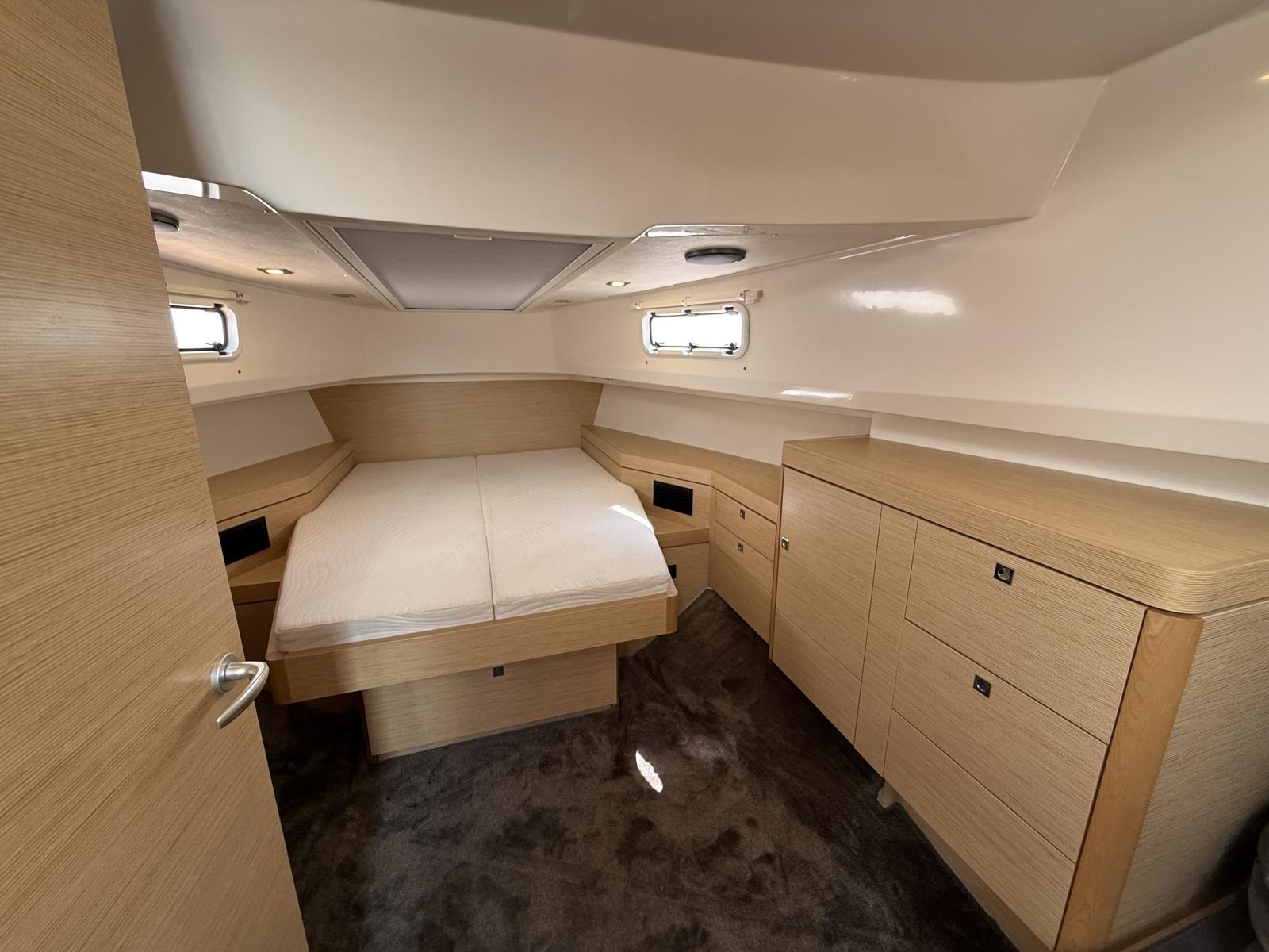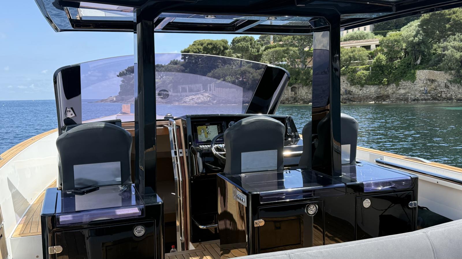 Propulsé par les IPS D6-400, le bateau offre une navigation douce, silencieuse et performante, avec une manœuvrabilité intuitive même en port. Le système joystick Volvo permet des accostages précis, renforçant le plaisir de piloter ce yacht à moteur open à la fois sportif et raffiné. Grâce à son faible tirant d’eau, il accède facilement aux criques les plus exclusives.