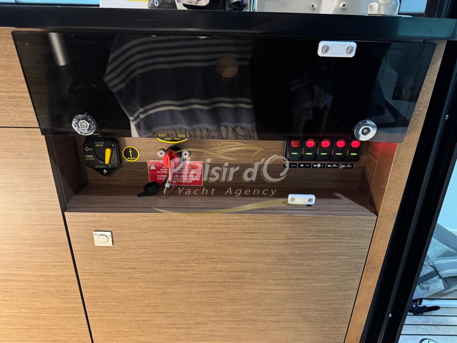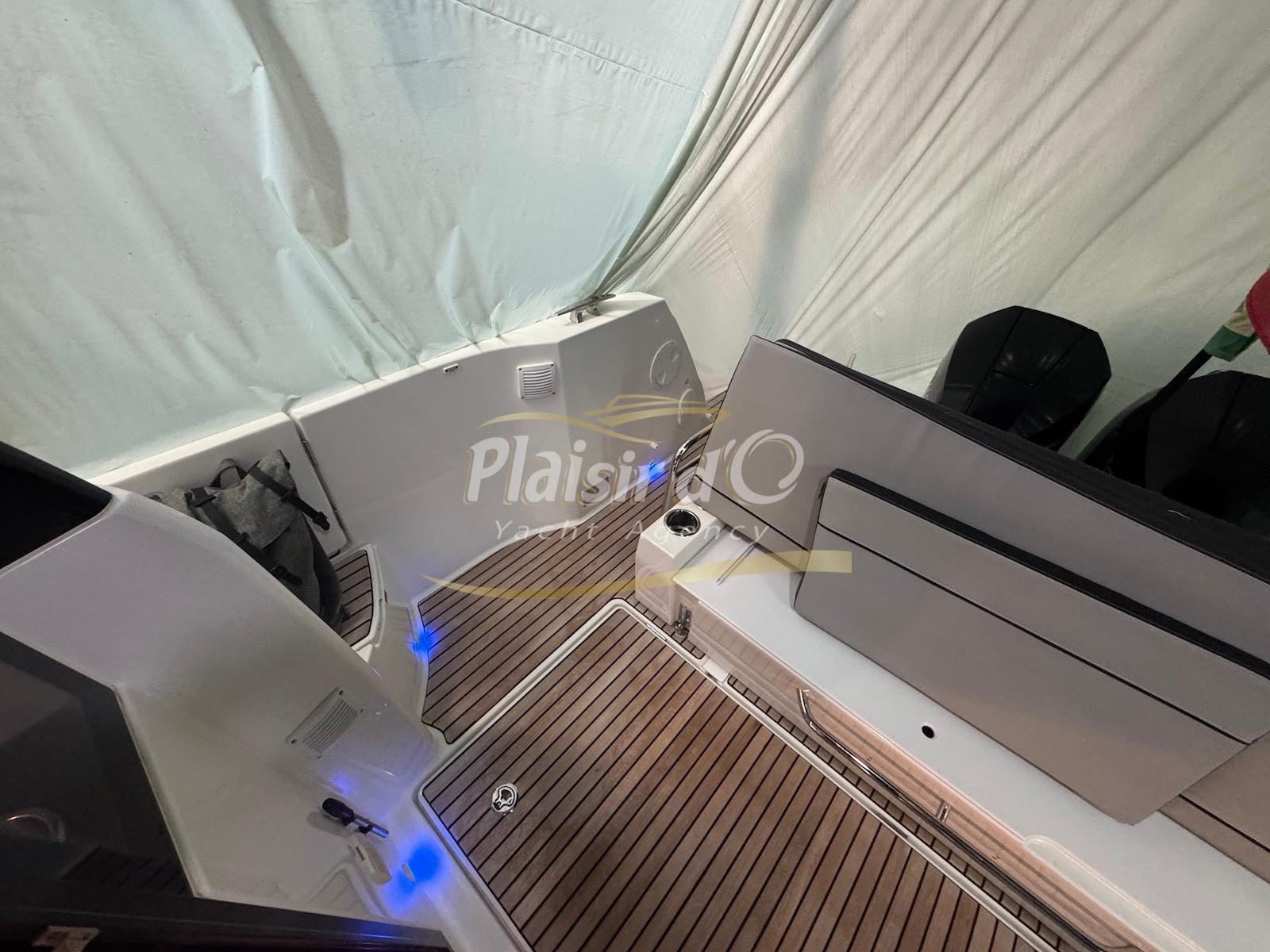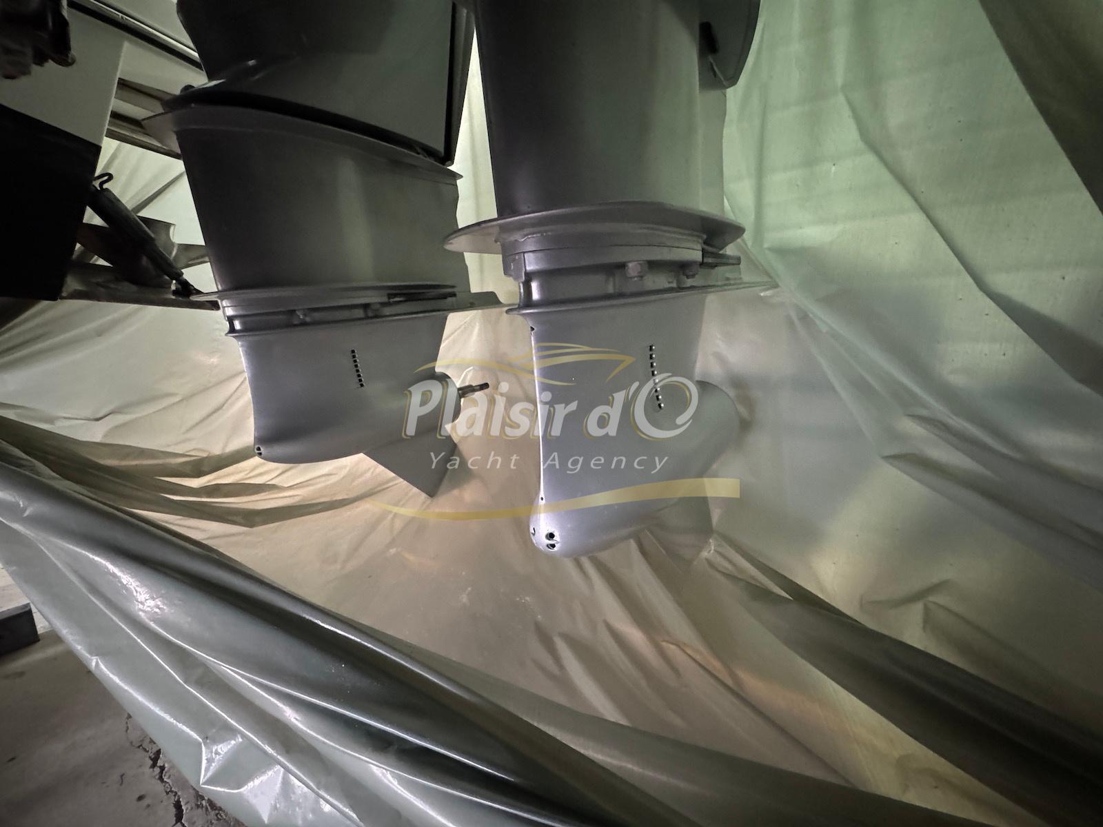 Nombreuses options : pilote automatique, climatisation réversible, système audio Fusion, Bain de soleil avant et arrière, taud de fermeture arrière, cockpit teck, réfrigérateur, chauffe eau, wc électrique, chargeur 220V …