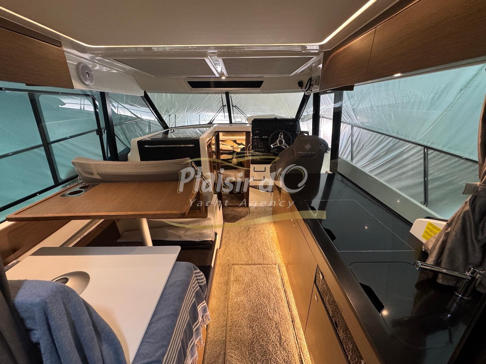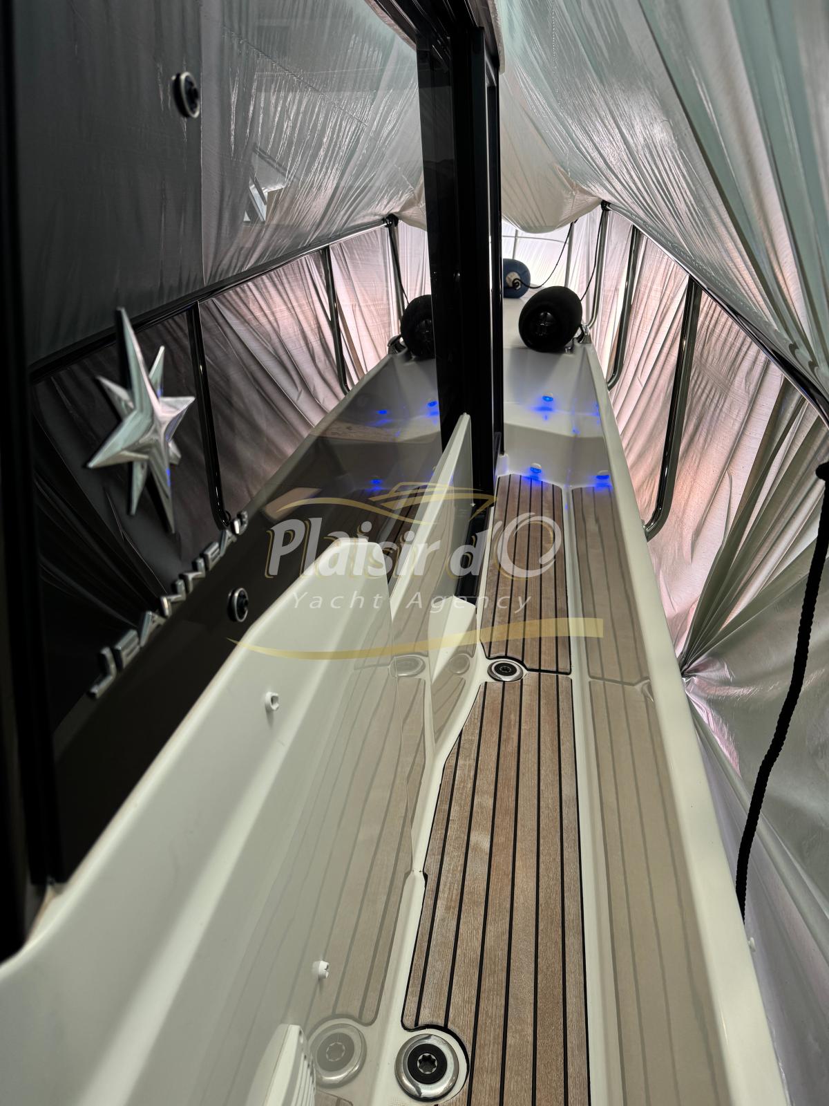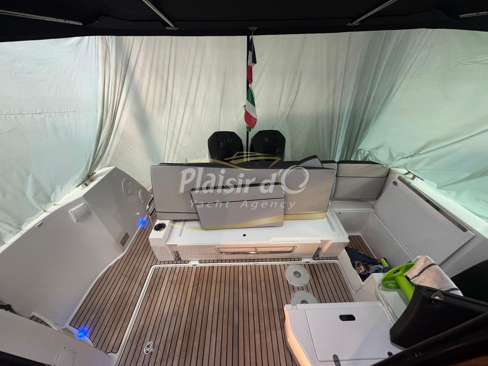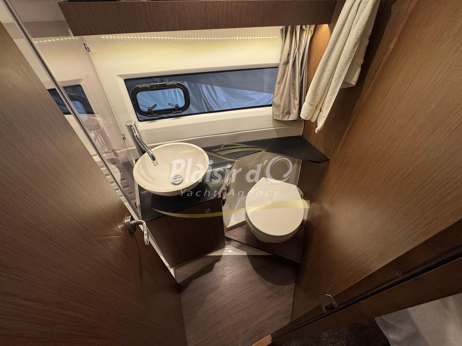 Nombreuses options : pilote automatique, climatisation réversible, système audio Fusion, Bain de soleil avant et arrière, taud de fermeture arrière, cockpit teck, réfrigérateur, chauffe eau, wc électrique, chargeur 220V …