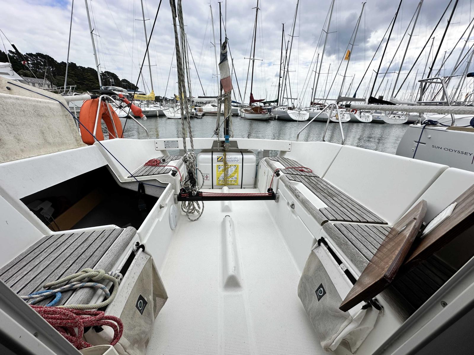 Grand-voile, génois et lazy bag neufs (2024), Spi asymétrique (2012), Drisses et écoutes en Dyneema, Chariot de grand-voile neuf, Gréement dormant révisé en 2024, Capote de descente (2020), Deux pilotes automatiques ST2000+, Loch et sondeur ST60+, VHF RT550 avec AIS, Enceintes intérieures et extérieures, Système de dérive révisé, Toile anti-roulis, StormBag neuf, Second jeu de voiles d’origine, Armement semi-hauturier, radeau de survie à jour.