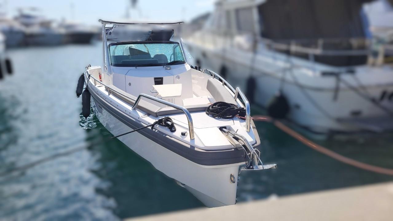 Ce sublime Day Boat propose un programme multifonctionnel avec un style moderne incomparable combiné avec une coque performante et économe en carburant. Facile à manipuler, beaucoup d'espace grâce à sa configuration spacieuse pour les bains de soleil, les sports nautiques, la pêche ou tout simplement la croisière.