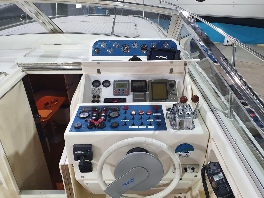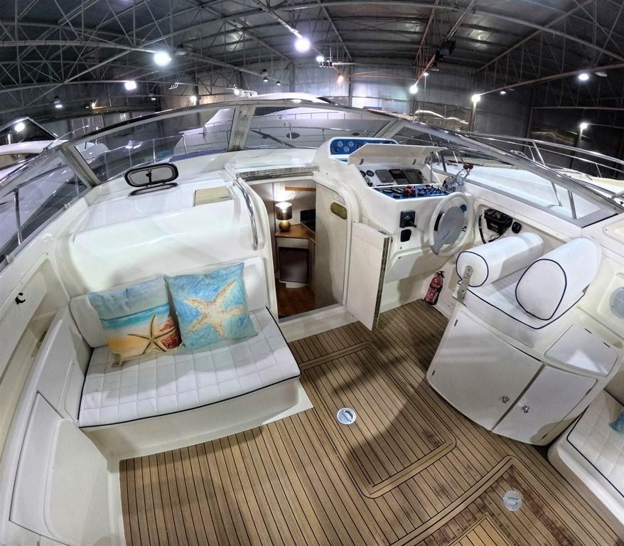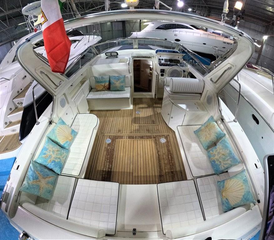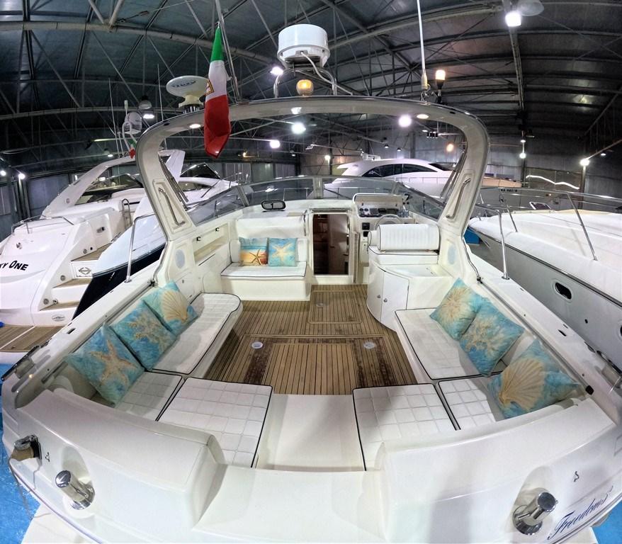 Ouverture du compartiment moteur électrique, Eau sous pression, Chargeur de batterie (2022), Douche de cockpit, Flaps hydrauliques, Indicateurs de flaps, Lavabo dans le cockpit, Éclairage de courtoisie, Spots sous-marins, Passerelle (Idraulica), Plateforme arrière (Allungata), Cockpit en teck, Prise de quai, Guindeau électrique, Echelle de bain, table de cockpit (A scomparsa nel pozzetto con apertura idraulica).