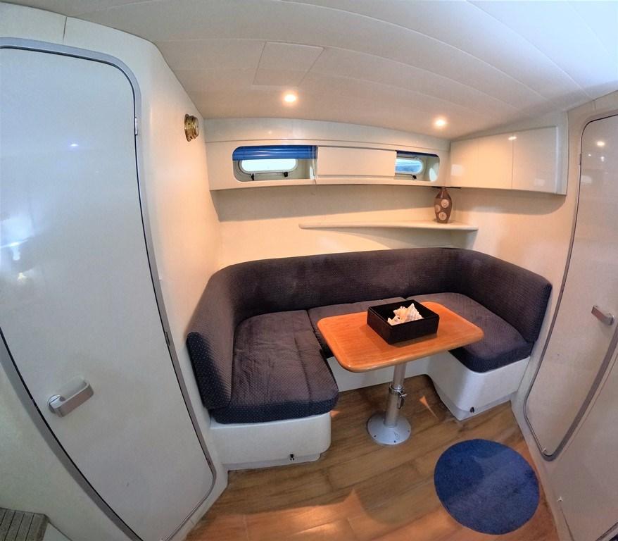 Rien de mieux dans un 35 pieds. Des espaces de convivialité extérieurs de taille maxi. Les espaces intérieurs que l’on trouve normalement dans les grands bateaux. Excellente solidité et qualité marine.