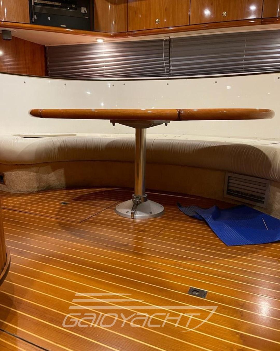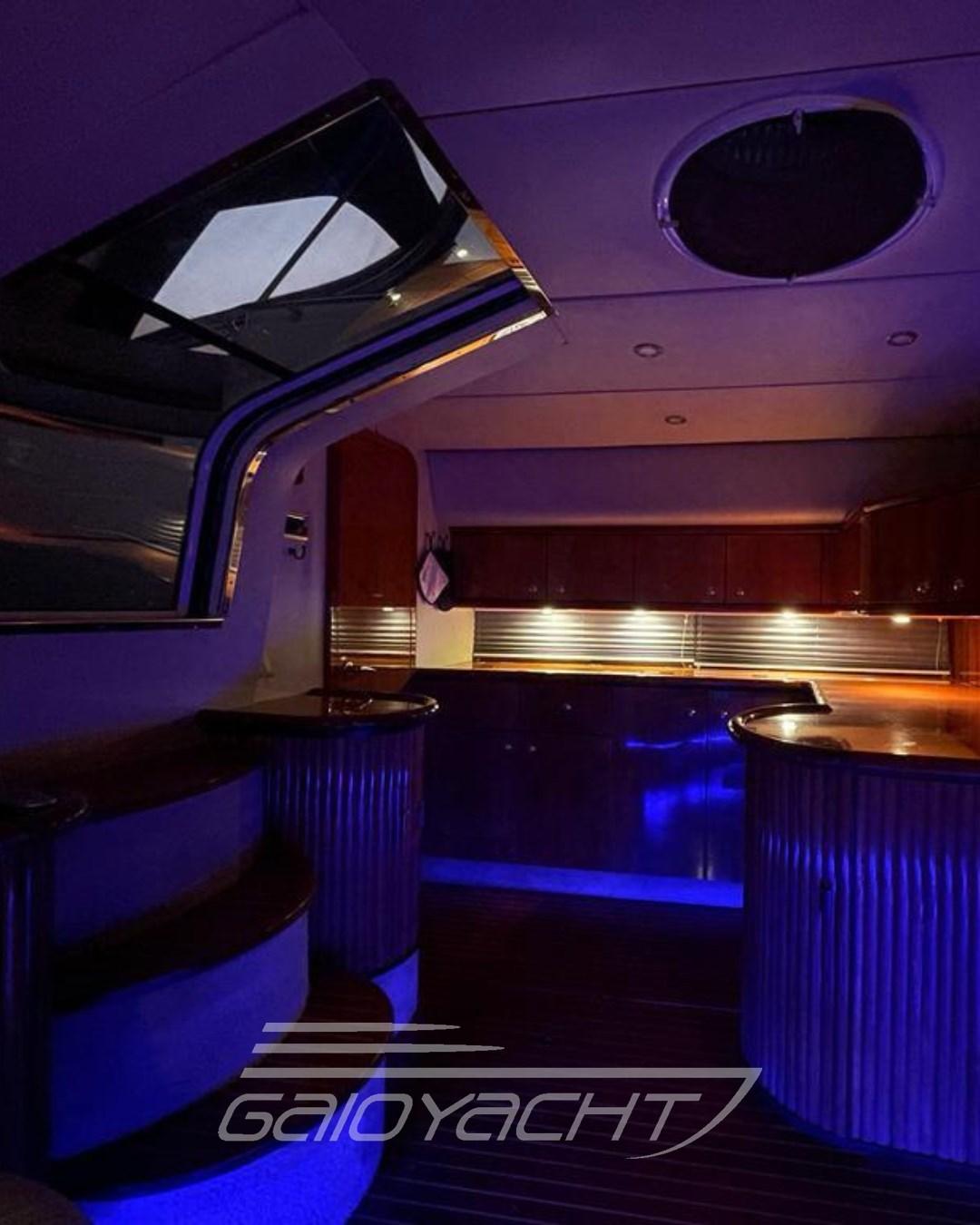 Alarme de pompe de cale, Couleur spéciale, Douche de cockpit, Phare de poursuite, Flaps hydrauliques, Indicateurs de flaps, Éclairage de courtoisie, Spots sous-marins, Passerelle, Plateforme arrière, Pompe de cale automatique, Porte latérale, Cockpit en teck, Prise de quai, Connexion eau sous pression à quai, Rollbar, Guindeau électrique, Echelle de bain, table de cockpit, Corne.