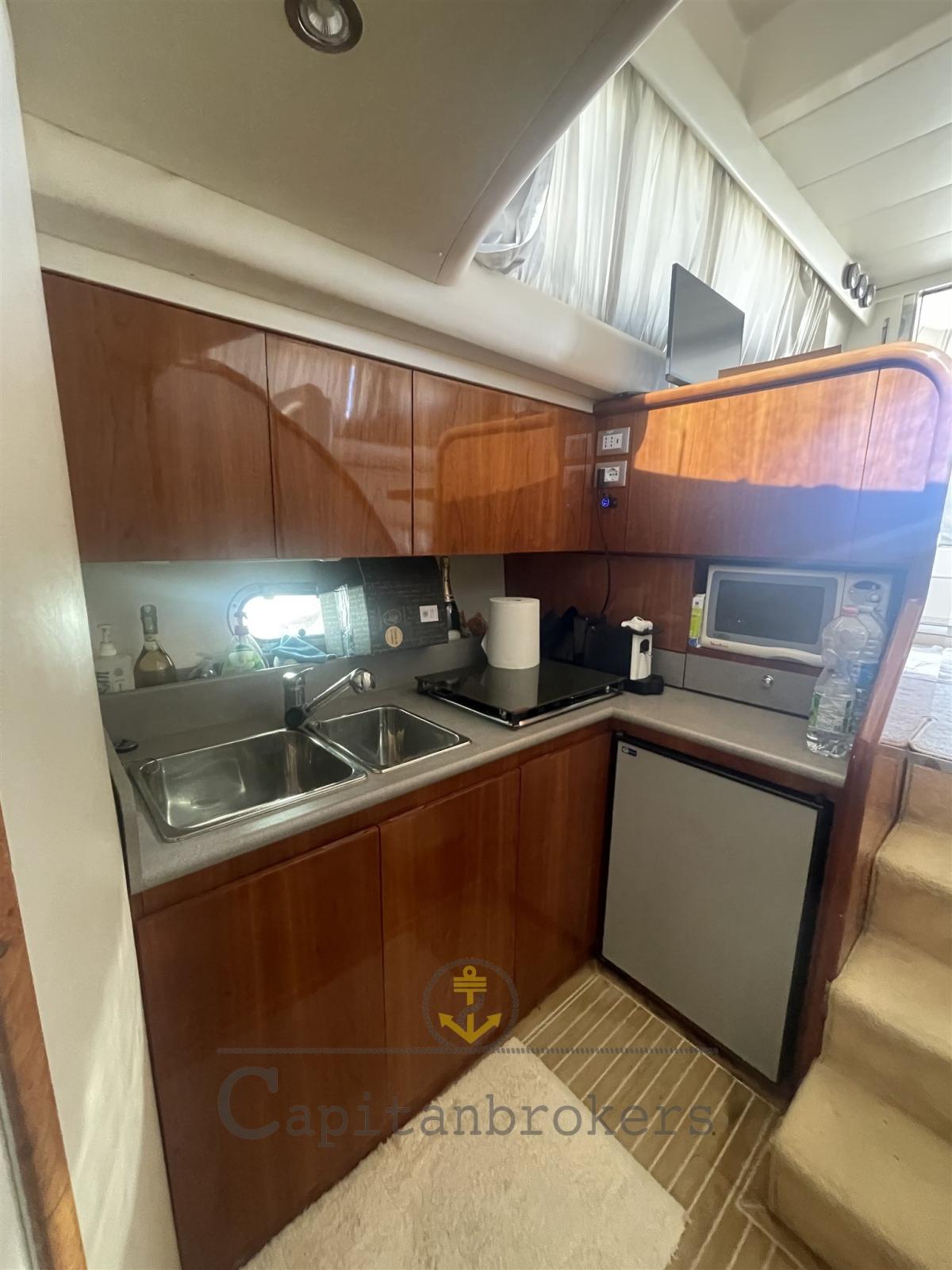 Alarme moteur, Alarme de pompe de cale, Douche de cockpit, Flaps hydrauliques, Lavage de chaine, Passerelle (idraulica), Plateforme arrière (in teak), Pompe de cale manuelle, Porte latérale, Cockpit en teck, Prise de quai, Echelle de bain, Corne, Winch électrique avant.