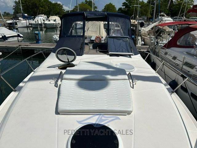Alarme gaz, Alarme moteur, Alarme de pompe de cale, Alternateur, Eau sous pression, Douche de cockpit, Flaps électriques, Indicateurs de flaps, Lavabo dans le cockpit, Éclairage de courtoisie, Passerelle, Plateforme arrière, Pompe de cale automatique, Porte latérale, Cockpit en teck, Prise de quai, Rollbar, Guindeau électrique, Echelle de bain, table de cockpit, Annexe, Corne.