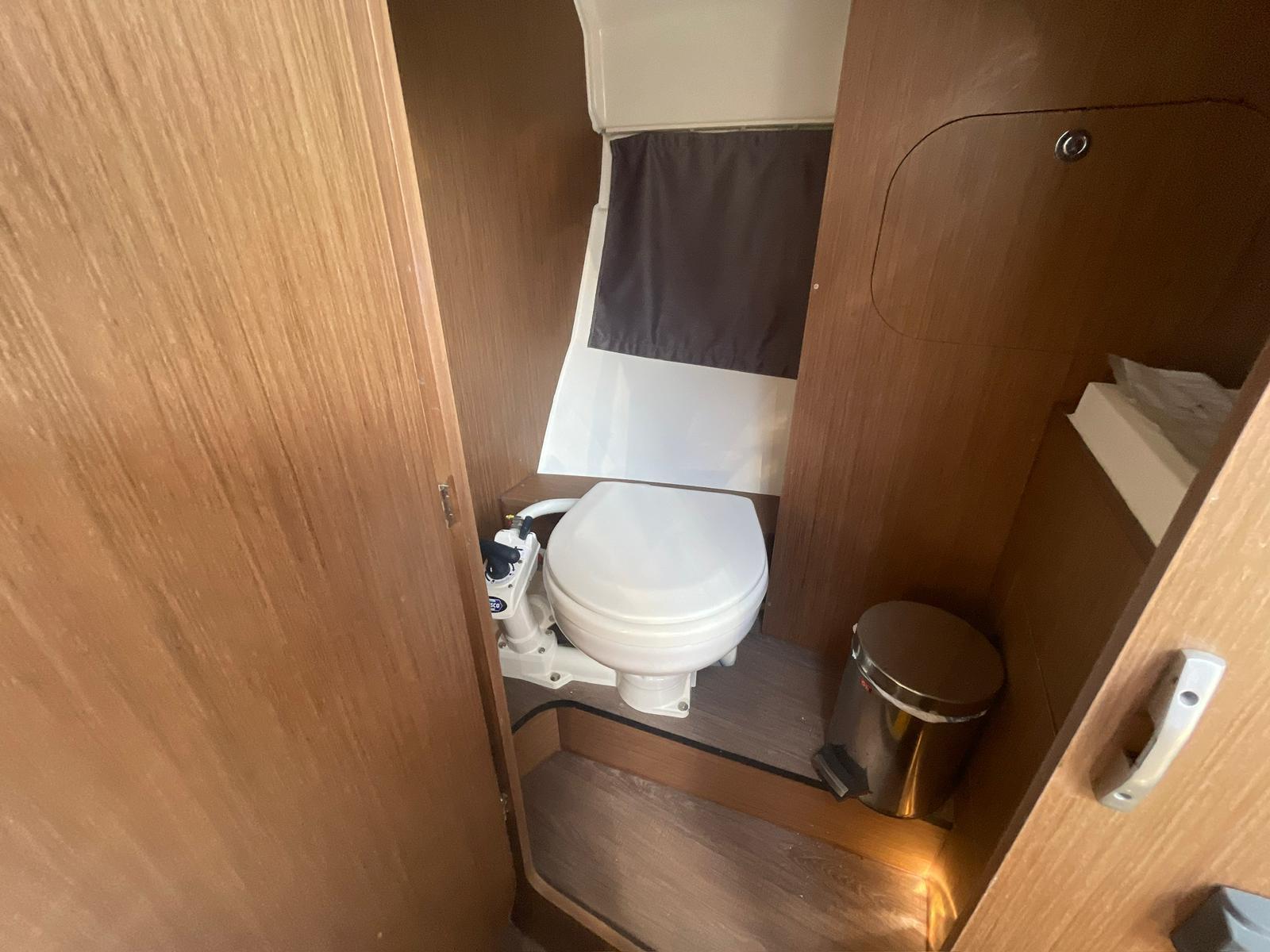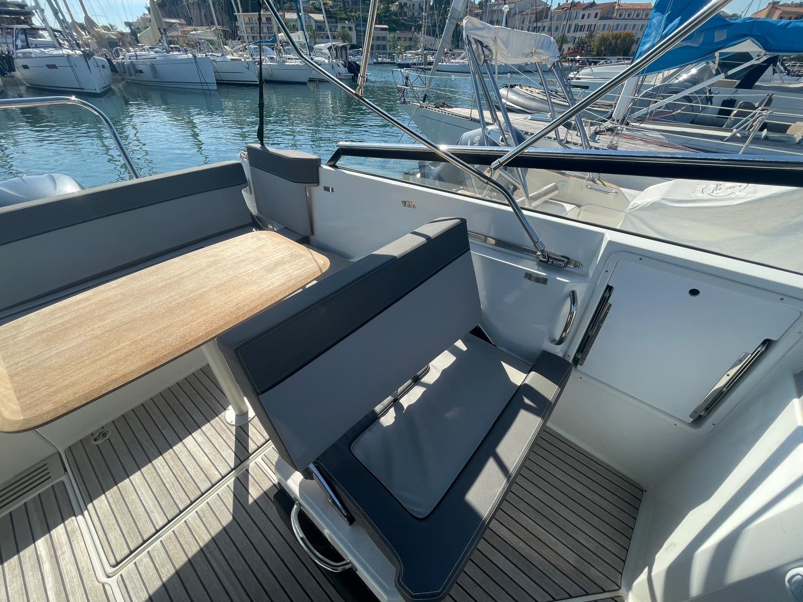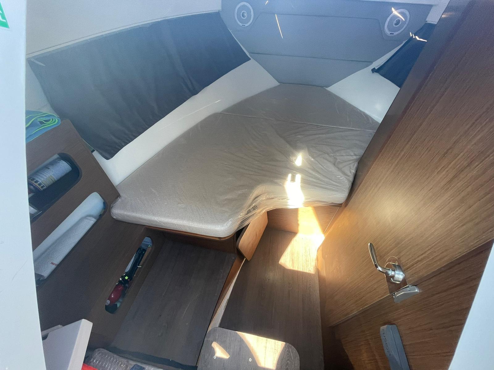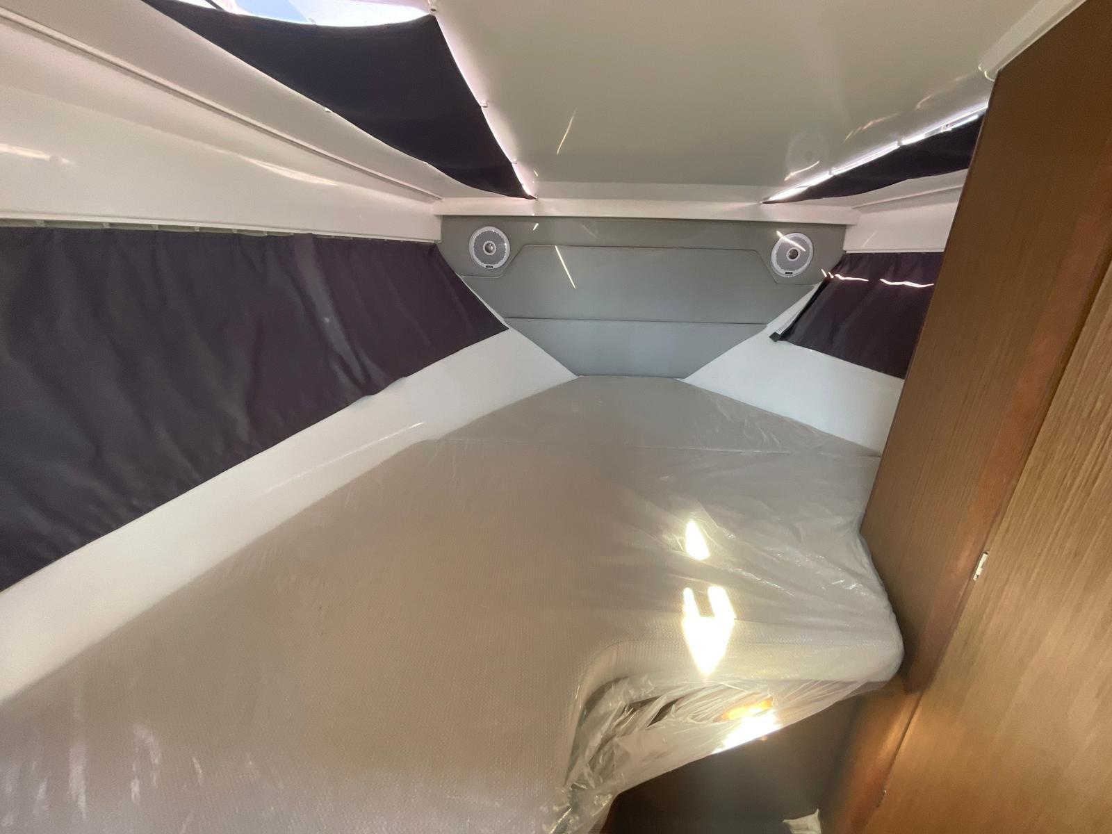 Ce bateau n’a quasiment jamais été utilisé : l’intérieur est totalement neuf, avec les couchettes encore sous protection d’origine, et la sellerie extérieure est impeccable.