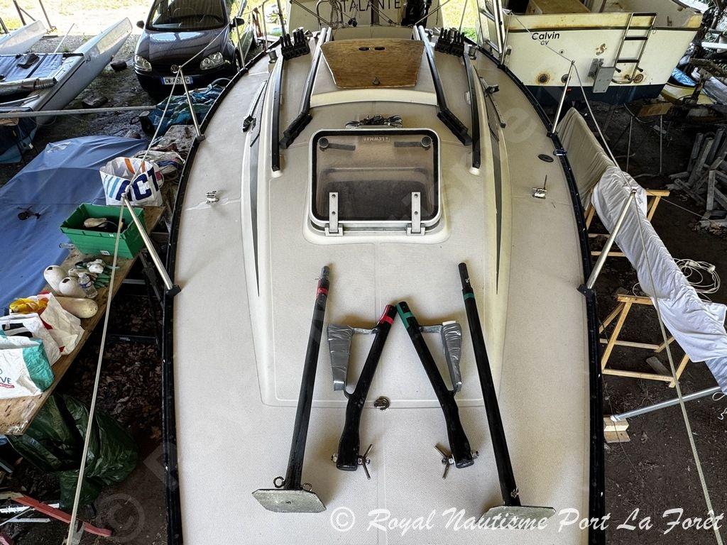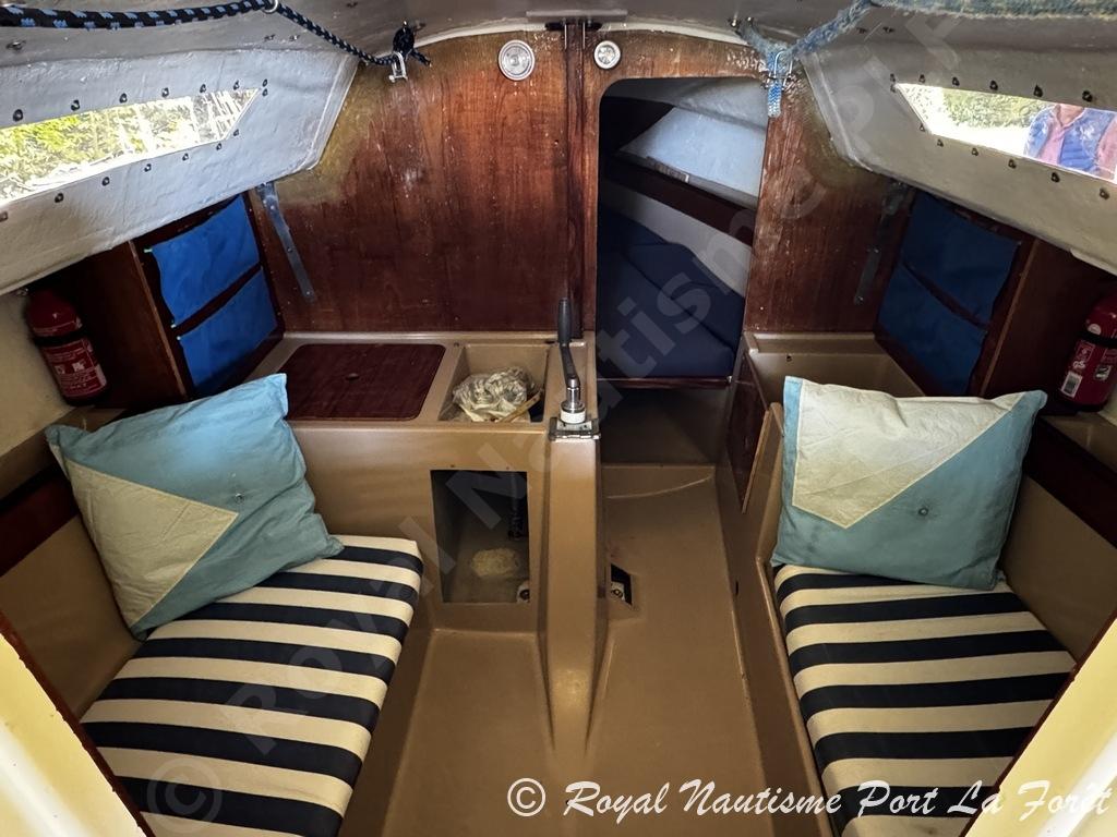 Bénéteau First 22 de 1984, petite unité avec quille relevable pour sorties côtières, avec béquilles.