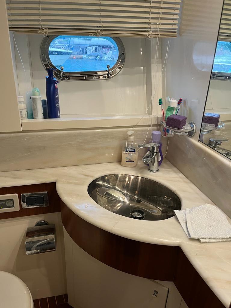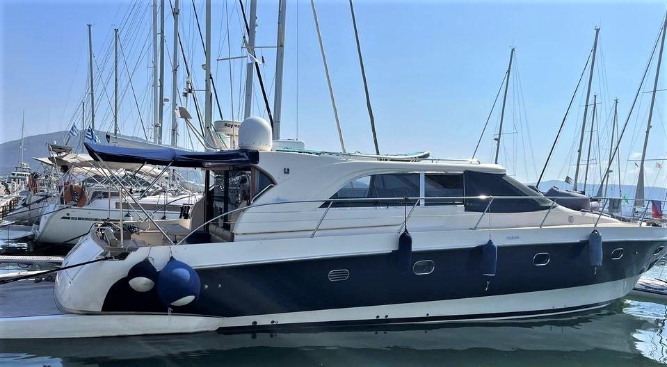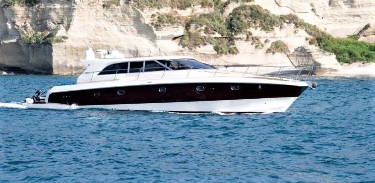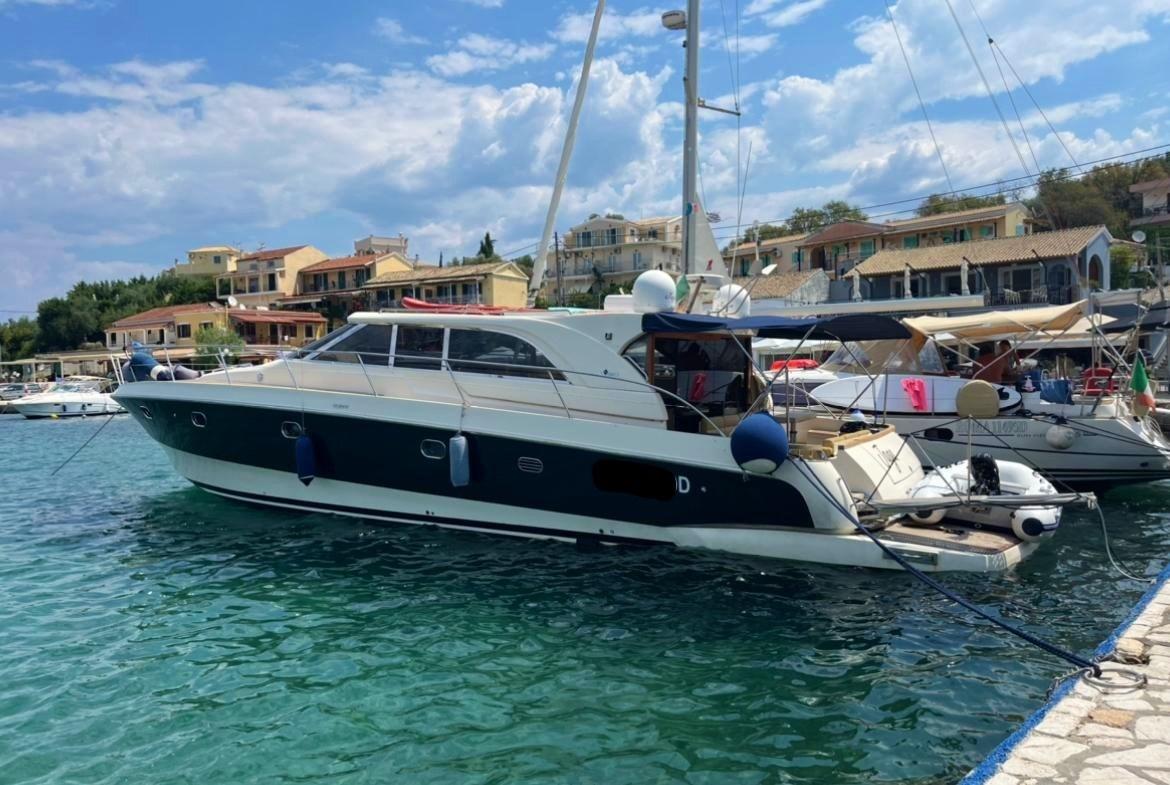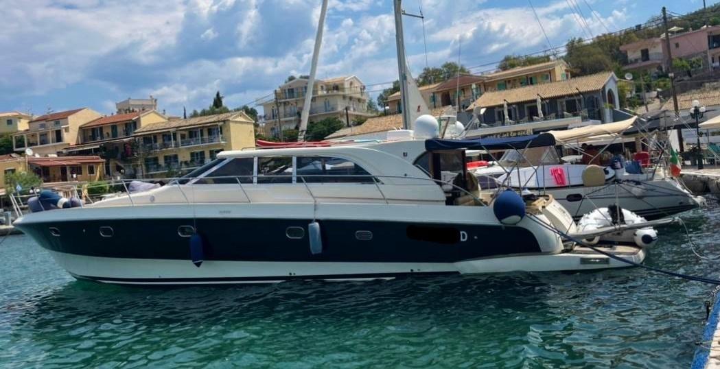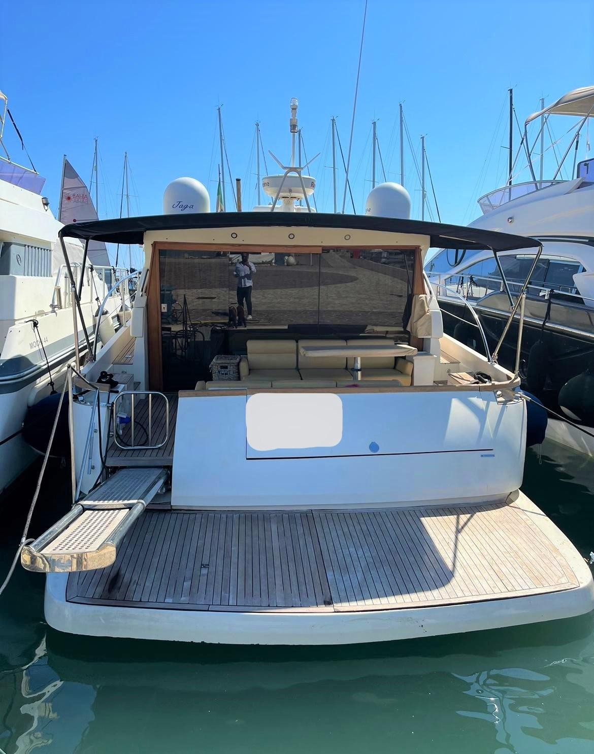 Eau sous pression, Passavant en teck, Couleur spéciale, Douche de cockpit, Flaps hydrauliques, Hard top, Éclairage de courtoisie, Passerelle (Idraulica a scomparsa), Pompe de cale automatique, Porte latérale, Cockpit en teck, Prise de quai, Guindeau électrique, table de cockpit, Annexe, Winch électrique arrière.