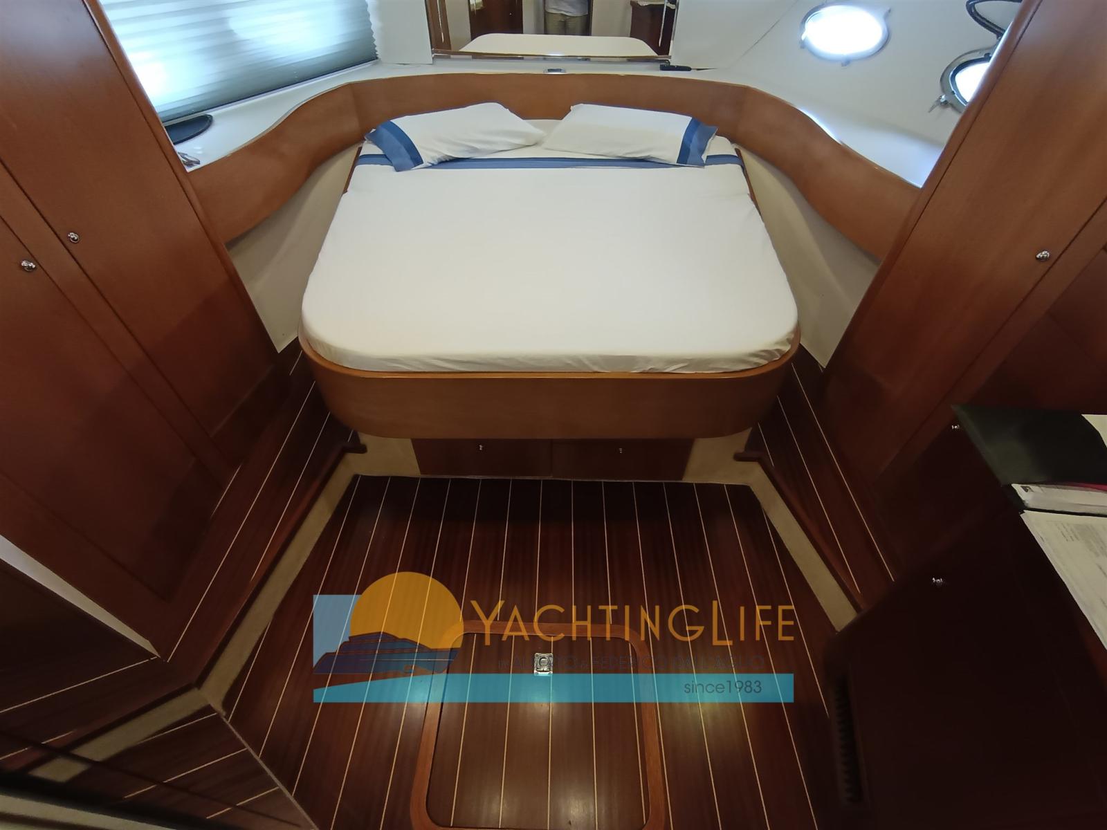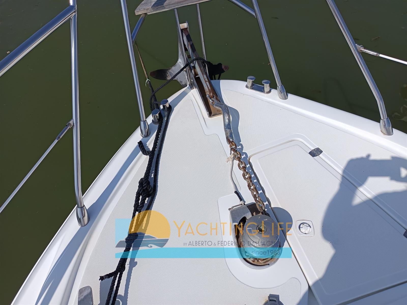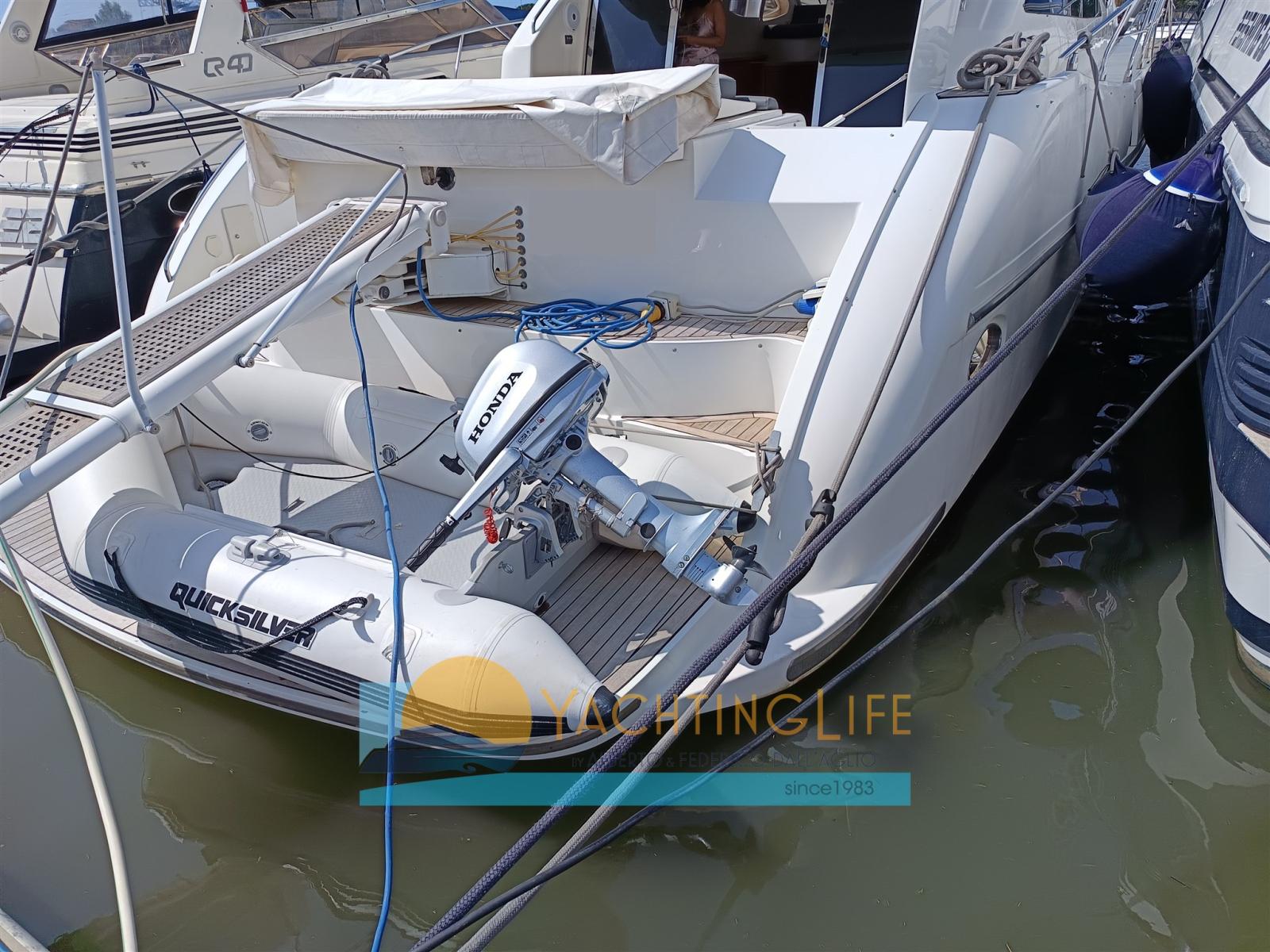 Alarme moteur, Eau sous pression, Douche de cockpit, Propulseur de poupe (Vetus), Propulseur d'étrave (Vetus), Flaps hydrauliques, Hard top, Éclairage de courtoisie, Moteur d'annexe, Passerelle, Pompe de cale automatique, Porte latérale, Cockpit en teck, Prise de quai, Guindeau électrique, Echelle de bain, table de cockpit (Elettrico), Annexe (Mercury).