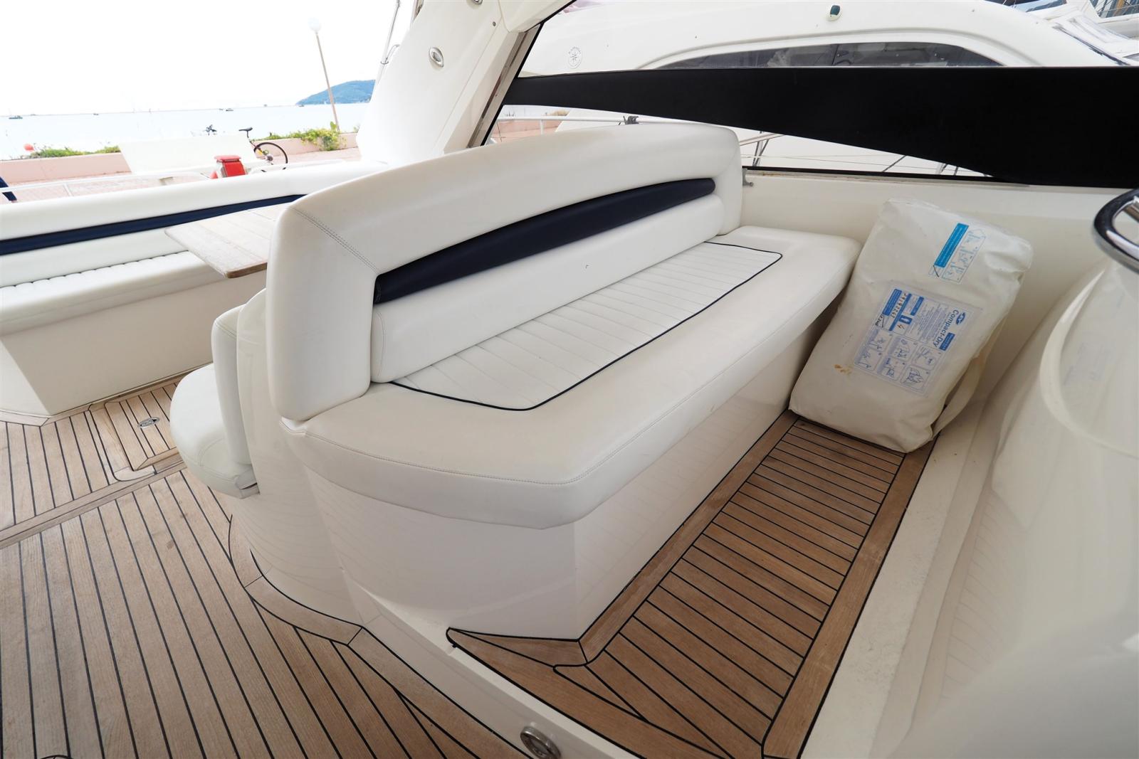 Eau sous pression (2021), Hélice de rechange, Phare de poursuite, Flaps hydrauliques, Garage à annexe, Hard top, Lavage de chaine, Éclairage de courtoisie, Spots sous-marins, Passerelle (idraulica a scomparsa), Plateforme arrière (Teak 2018), Cockpit en teck (2024), Guindeau électrique (2018), table de cockpit (a scomparsa), Annexe (arimar 280 + 9hp), Corne, Winch électrique avant.