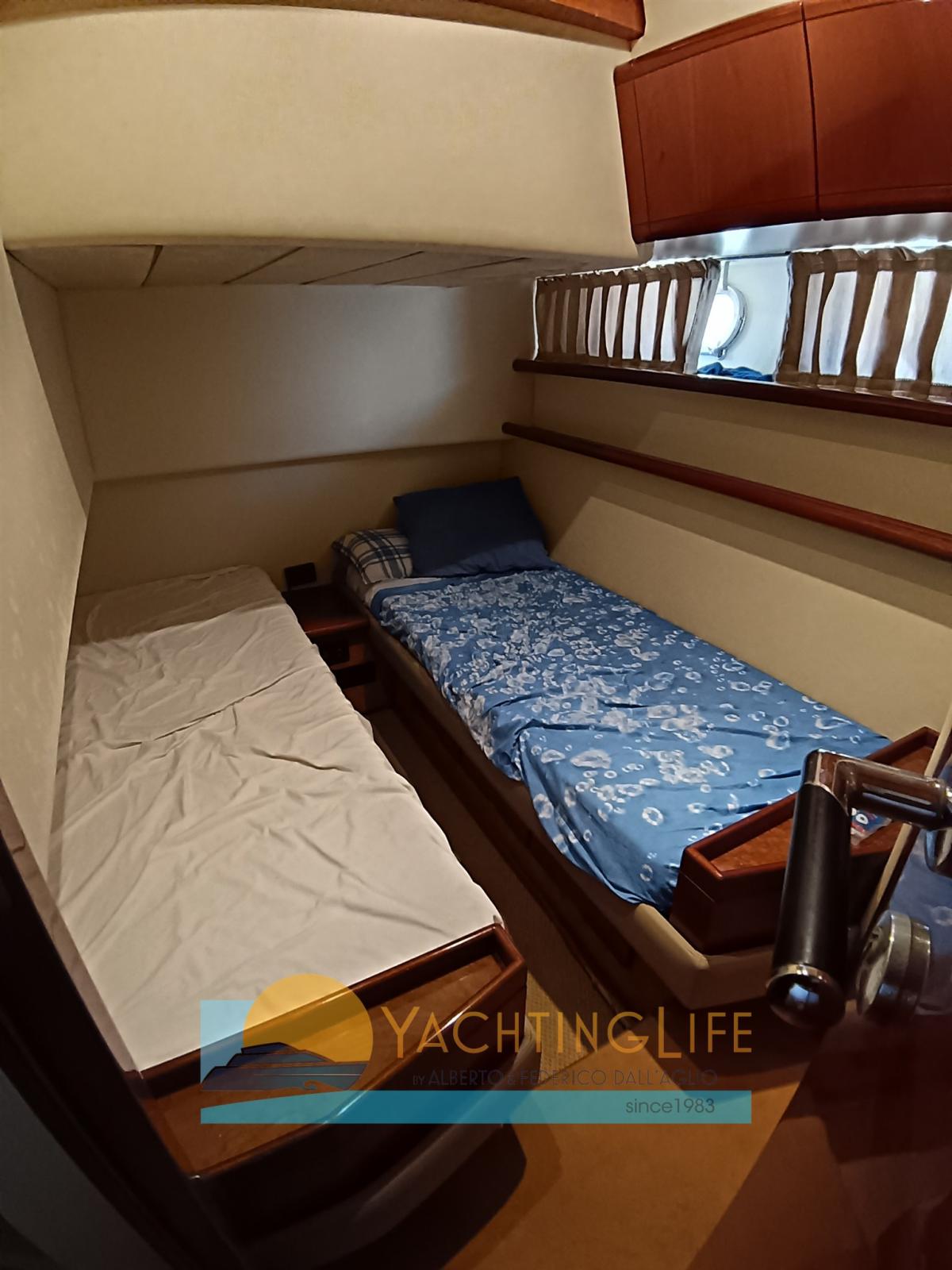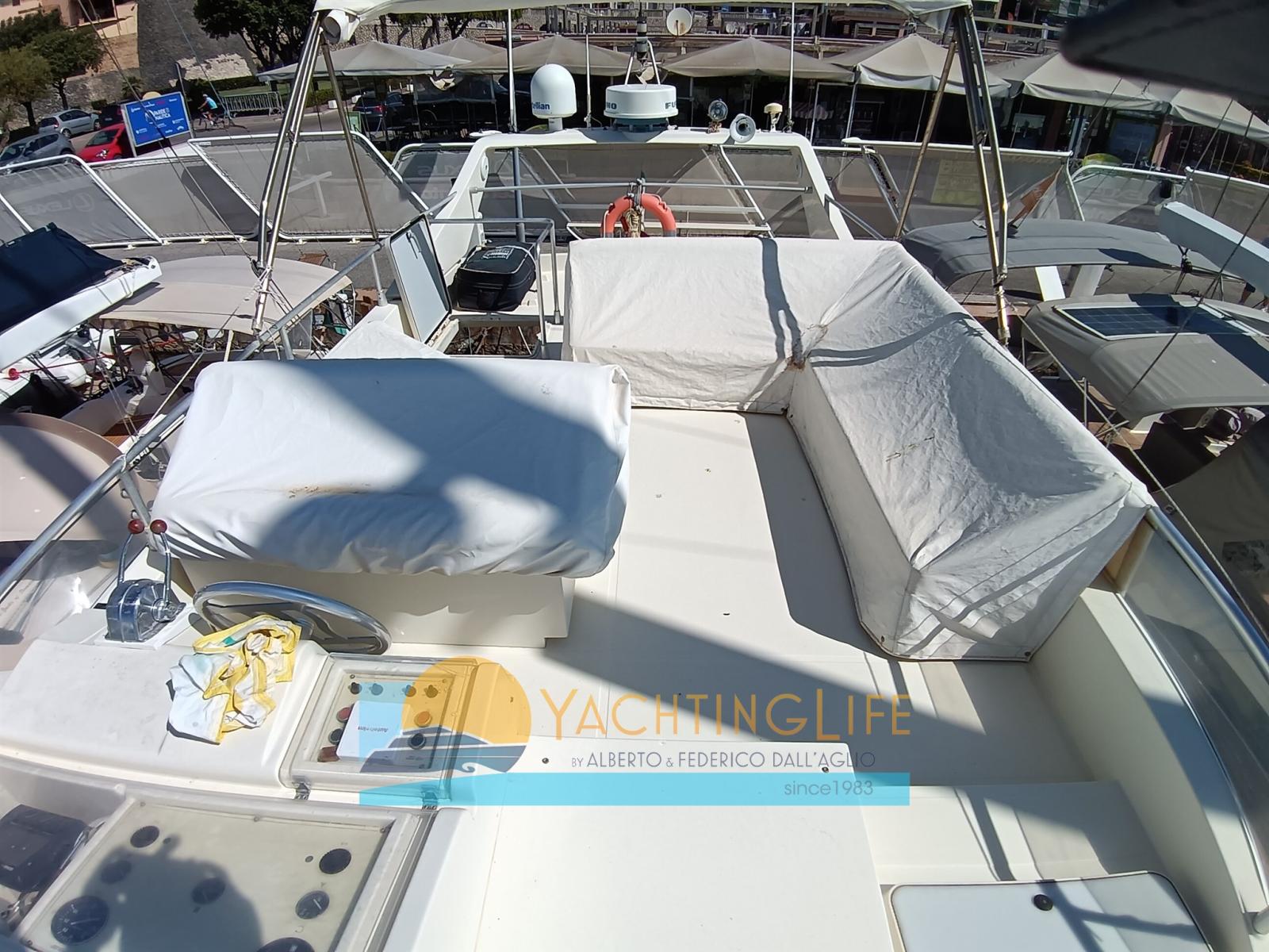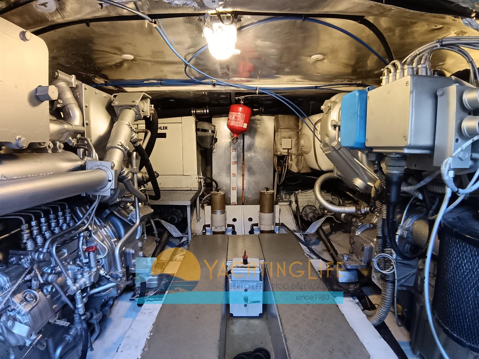 Alarme moteur, Alarme de pompe de cale, Eau sous pression, 2 Flaps hydrauliques, Indicateurs de flaps, Passerelle (idraulica), Pompe de cale automatique, Cockpit en teck, Prise de quai, Guindeau électrique, Annexe (e motore), Corne, Winch électrique arrière.
