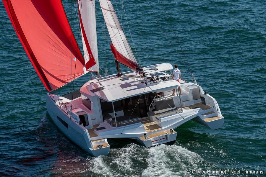 Le NEEL 47 incarne l'excellence dans le domaine des trimarans de croisière, alliant sécurité, performance et confort à bord. Avec son design moderne et élégant, marqué par des pare-brises inversés antireflet de la marque Antireflex Window®, ce navire impressionne par ses lignes fluides et dynamiques qui reflètent à la fois son caractère sportif et sa fonctionnalité.