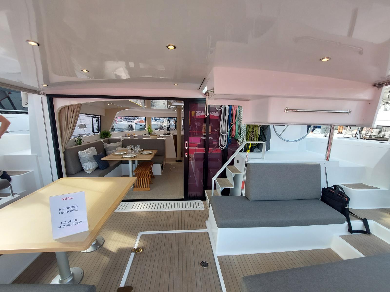 L'une des caractéristiques remarquables du NEEL 47 est son poste de barre surélevé, offrant une vue panoramique exceptionnelle et une accessibilité optimale pour le skipper. Cette disposition ergonomique permet des manœuvres précises et centralisées, assurant ainsi la sécurité de l'équipage même dans les conditions de navigation les plus exigeantes. De plus, la communication fluide entre le poste de barre et le cockpit contribue à une expérience de navigation agréable et harmonieuse.