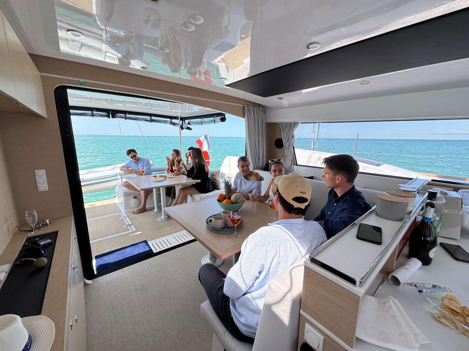 À l'intérieur, le NEEL 47 offre un vaste espace de vie avec son carré communicant totalement avec le cockpit (Cockloon®). Sa grande cuisine et sa cabine propriétaire offrent une vue à 300° sur l'extérieur, apportant luminosité et sécurité. Les matériaux de haute qualité et l'ergonomie des installations simplifient l’entretien et contribuent à la qualité de vie à bord.