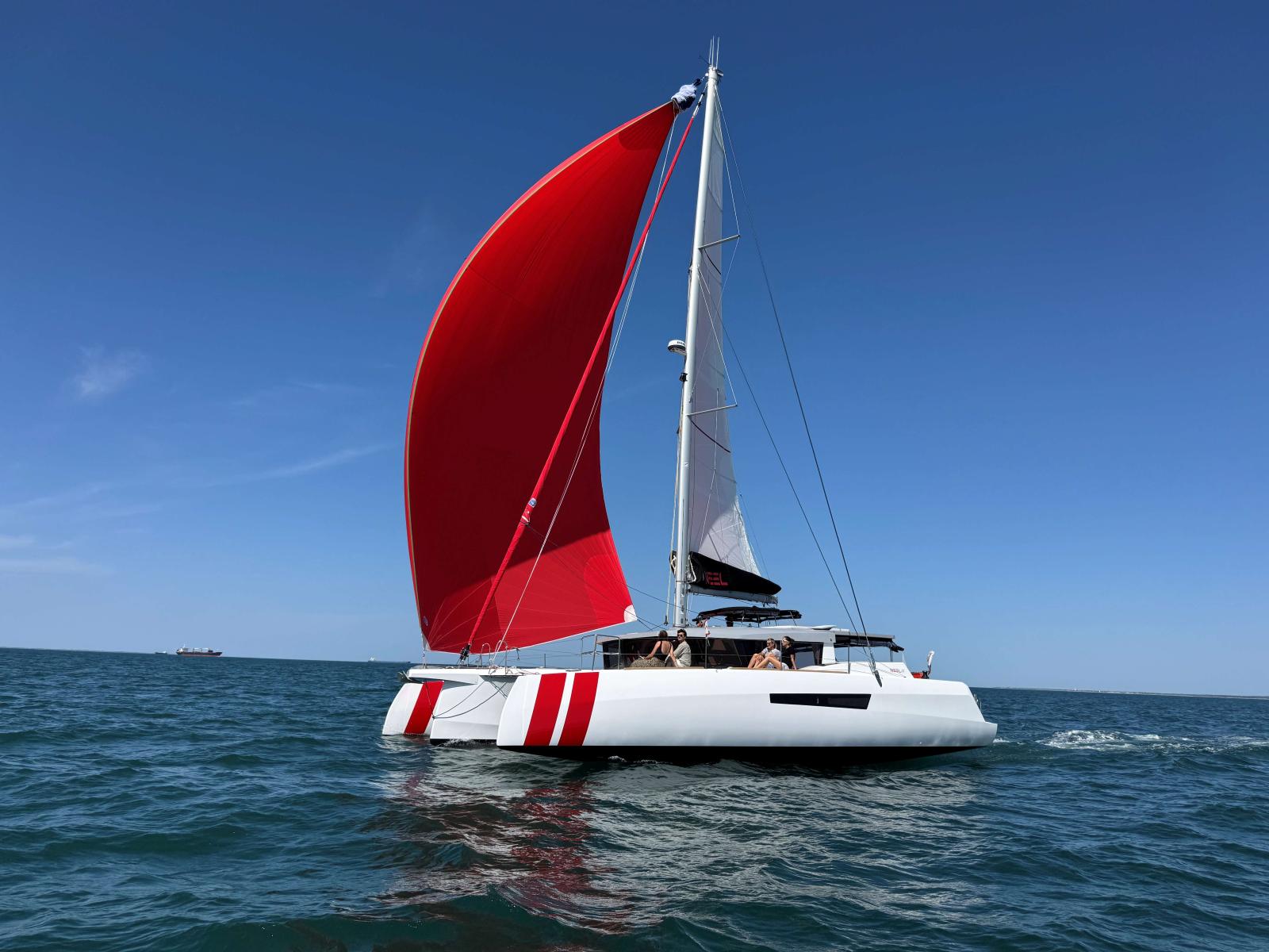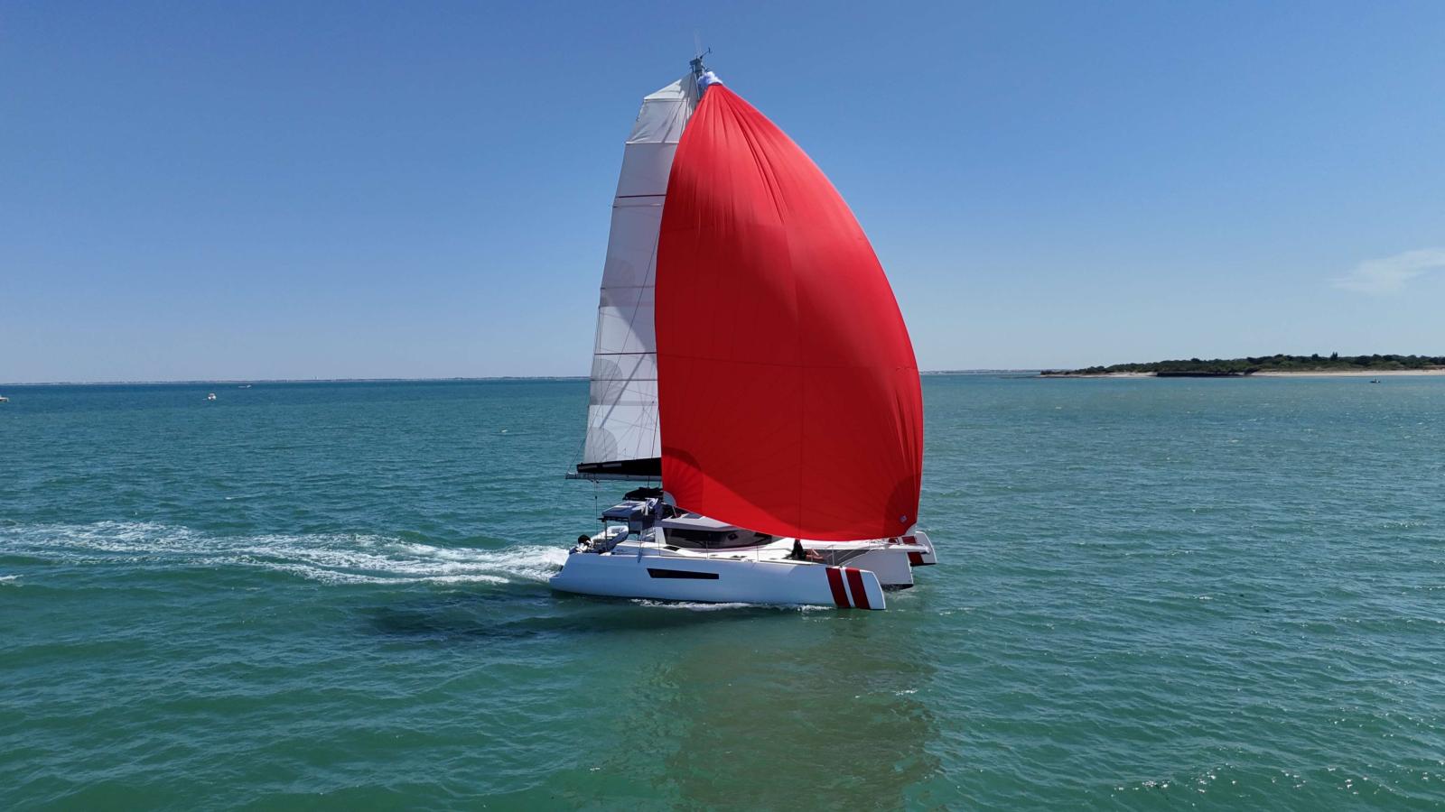 Le NEEL 47, construit en infusion d’une seule pièce, allie rigidité et légèreté. Grâce à son gréement moderne et à son mono-safran profond et relié à la barre par drosse textile, il offre un plaisir de navigation et des performances exceptionnelles, rares parmi les multicoques de croisière.