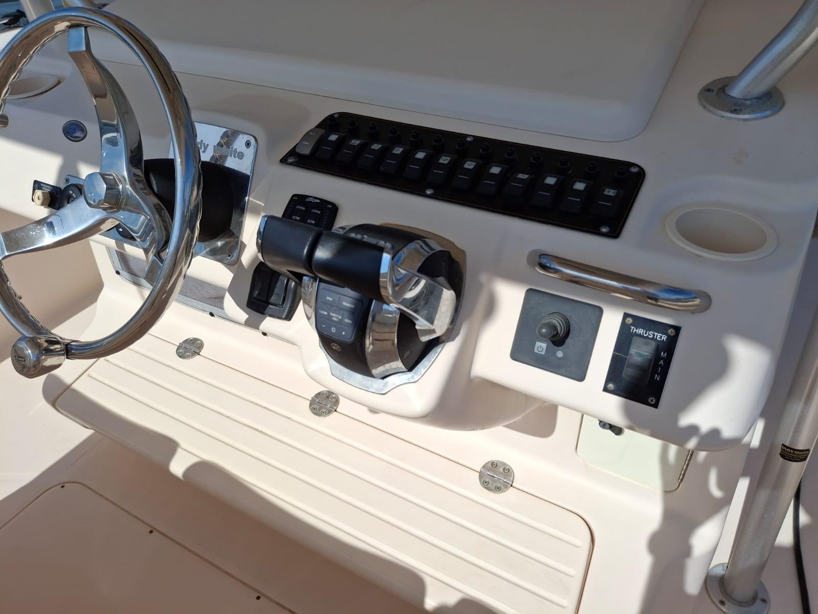 T-Top, avec porte-cannes et lumières de cockpit ; rail latéral en acier inoxydable 316 ; Prises 12 V pour enrouleurs électriques ; sondeur d’échosondeur affleurant ; hélices en acier inoxydable ; fermetures frontales et latérales ; 2021 NOUVEAU : moteurs ; heures estimées environ 400 ; 5 % de commission de courtage + 22 % de TVA à la charge de l’acheteur (la TVA est calculée uniquement sur le montant de la commission)