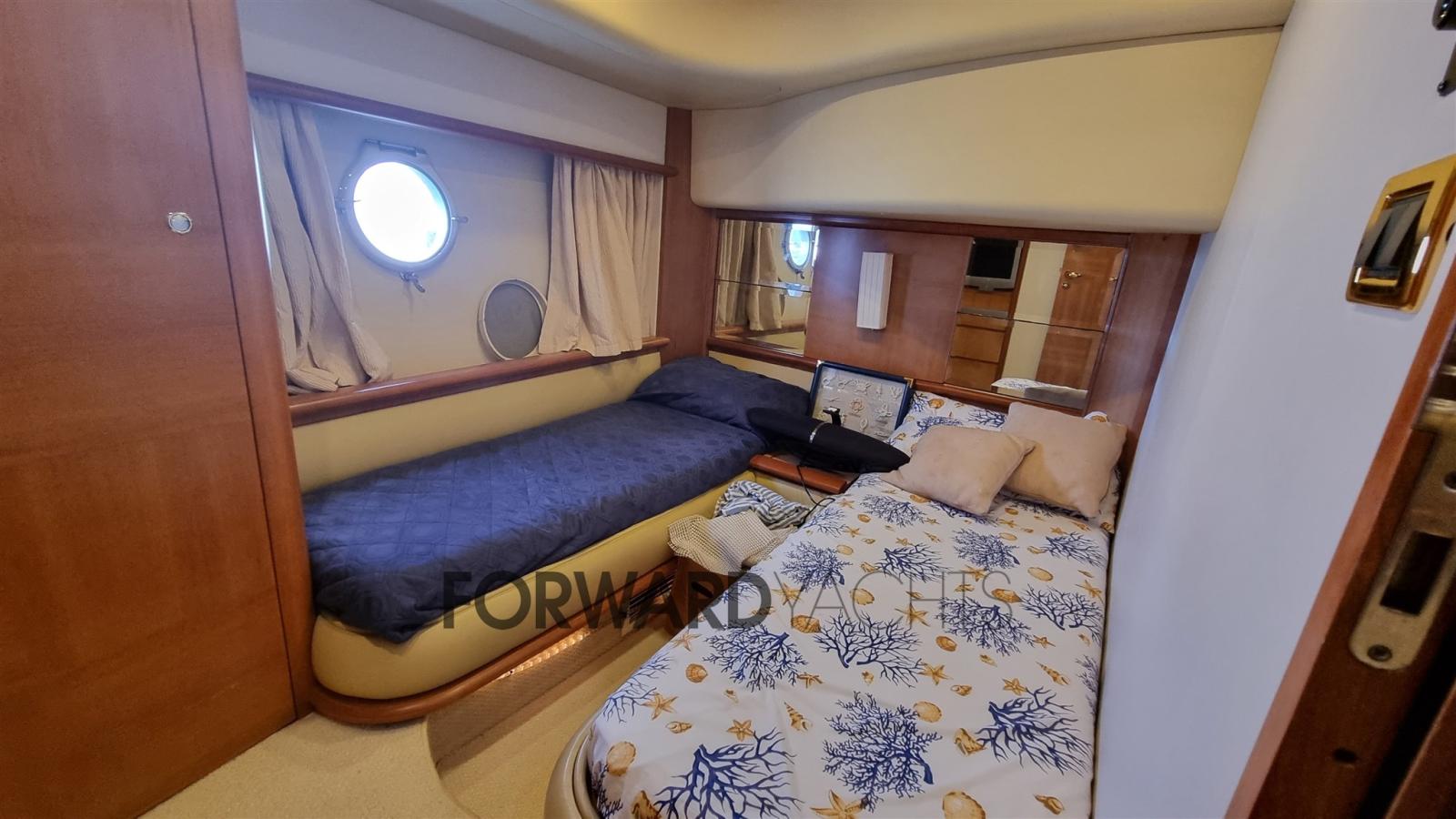 Eau sous pression, Douche de cockpit, Double barre à roue, Flaps hydrauliques, Grue de flybridge, Extincteur(s) fixe(s), Indicateurs de flaps, Éclairage de courtoisie, Passerelle (Idraulica), Plateforme arrière (Teak), Pompe de cale automatique, Porte latérale, Cockpit en teck, Prise de quai, Guindeau électrique, Echelle de bain, table de cockpit, 2 Winch électrique, Winch électrique arrière.