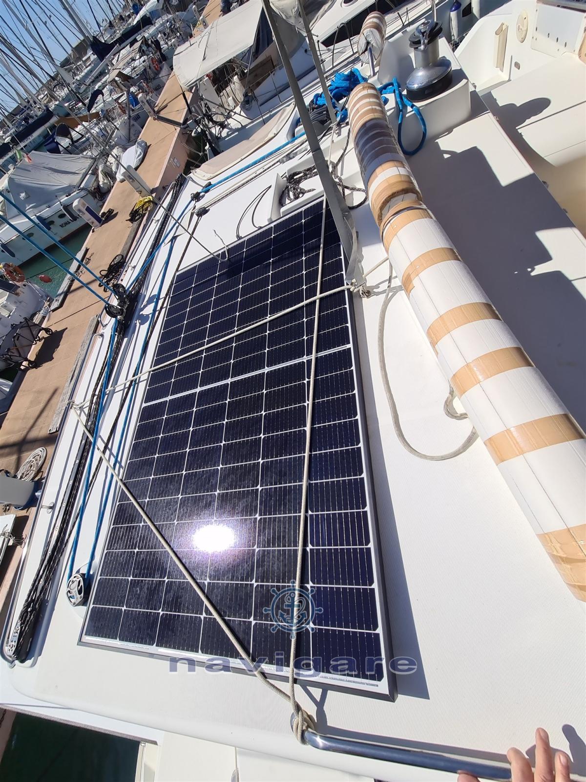 Alarme moteur, Alarme de pompe de cale, Eau sous pression, 6 Batteries (2021), Chargeur de batterie (2023), Douche de cockpit, Hélice de rechange, Bossoirs pour annexe, Lavage de chaine, Lavabo dans le cockpit, Éclairage de courtoisie, Spots sous-marins, Panneau solaire, Passerelle (in carbonio, larga 50 cm), Pompe de cale automatique, Pompe de cale manuelle, Cockpit en teck, Prise de quai, Connexion eau sous pression à quai, Guindeau électrique (2023), Gréement monotoron, Echelle de bain, Système de filtration des eaux usées, table de cockpit, Filières avec sortie latèrale, Winch, Winch électrique arrière, Windex.