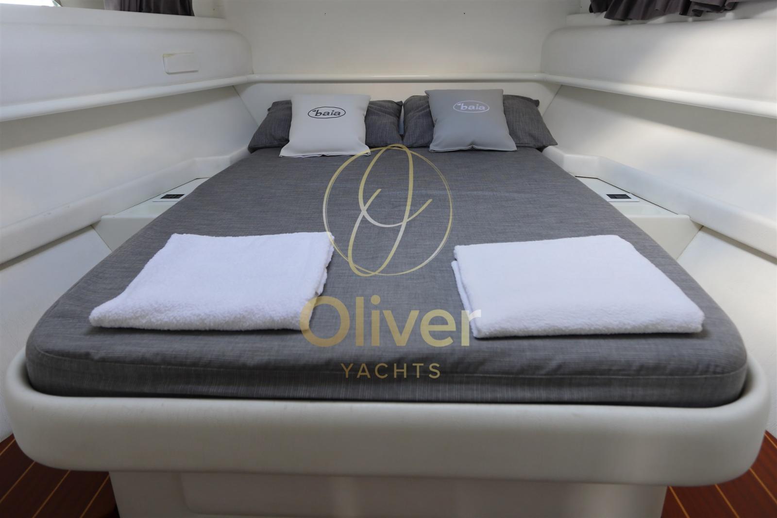 L’intérieur du Baia 50 Force One a été redessiné en 2019 avec une refonte minutieuse des espaces pour assurer un maximum de confort à bord. Les chambres se distinguent par leur élégance, leur fonctionnalité et leur souci du détail, avec des finitions modernes et des matériaux de qualité, tout en conservant l’esprit sportif du bateau.