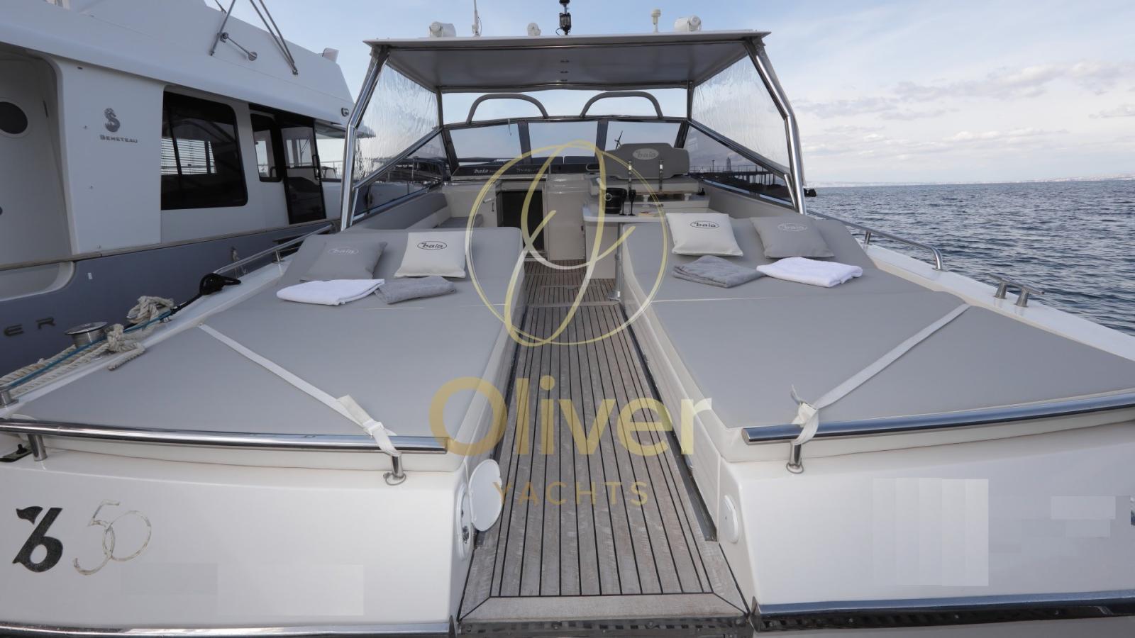 Cet exemplaire particulier, construit en 1990, a bénéficié d’un refit total en 2019, qui a complètement renouvelé son style et ses équipements. Parmi les principaux changements, on peut citer l’installation d’un toit rigide, l’ajout de verre pour plus de luminosité et de visibilité, et une nouvelle structure en acier AISI 316. Le passage à la proue a été facilité grâce à l’ouverture centrale, tandis que l’habitabilité sur le quai est améliorée grâce à une passerelle rétractable PIN Craft parfaitement intégrée. À l’arrière, les portes électriques, les doubles coussins, le grand bain de soleil et la sellerie en teck complètent un aménagement de croiseur sportif de prestige.