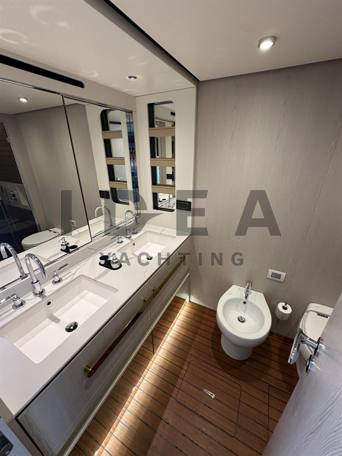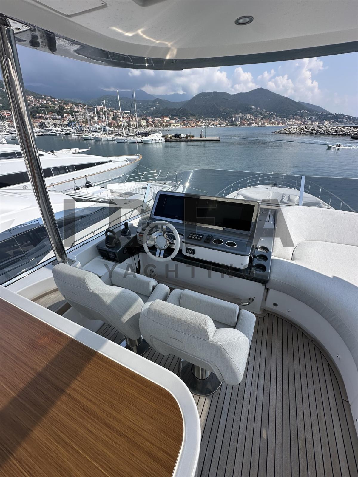Alarme gaz, Alarme moteur, Alarme de pompe de cale, Eau sous pression, Passavant en teck, Douche de cockpit, Double barre à roue, Phare de poursuite (electric), Hard top, Extincteur(s) fixe(s), Éclairage de courtoisie, 7 Spots sous-marins, Passerelle (Opacmare hydraulic telescopic), Plateforme arrière (hydraulic), Pompe de cale automatique, Pompe de cale manuelle, Porte latérale, Porte latérale, Cockpit en teck, Prise de quai, Connexion eau sous pression à quai, Onduleur, Guindeau électrique, Echelle de bain, Stabilisateurs (Seakeeper NG26), table de cockpit, Corne, 2 Winch électrique arrière, Winch électrique avant.