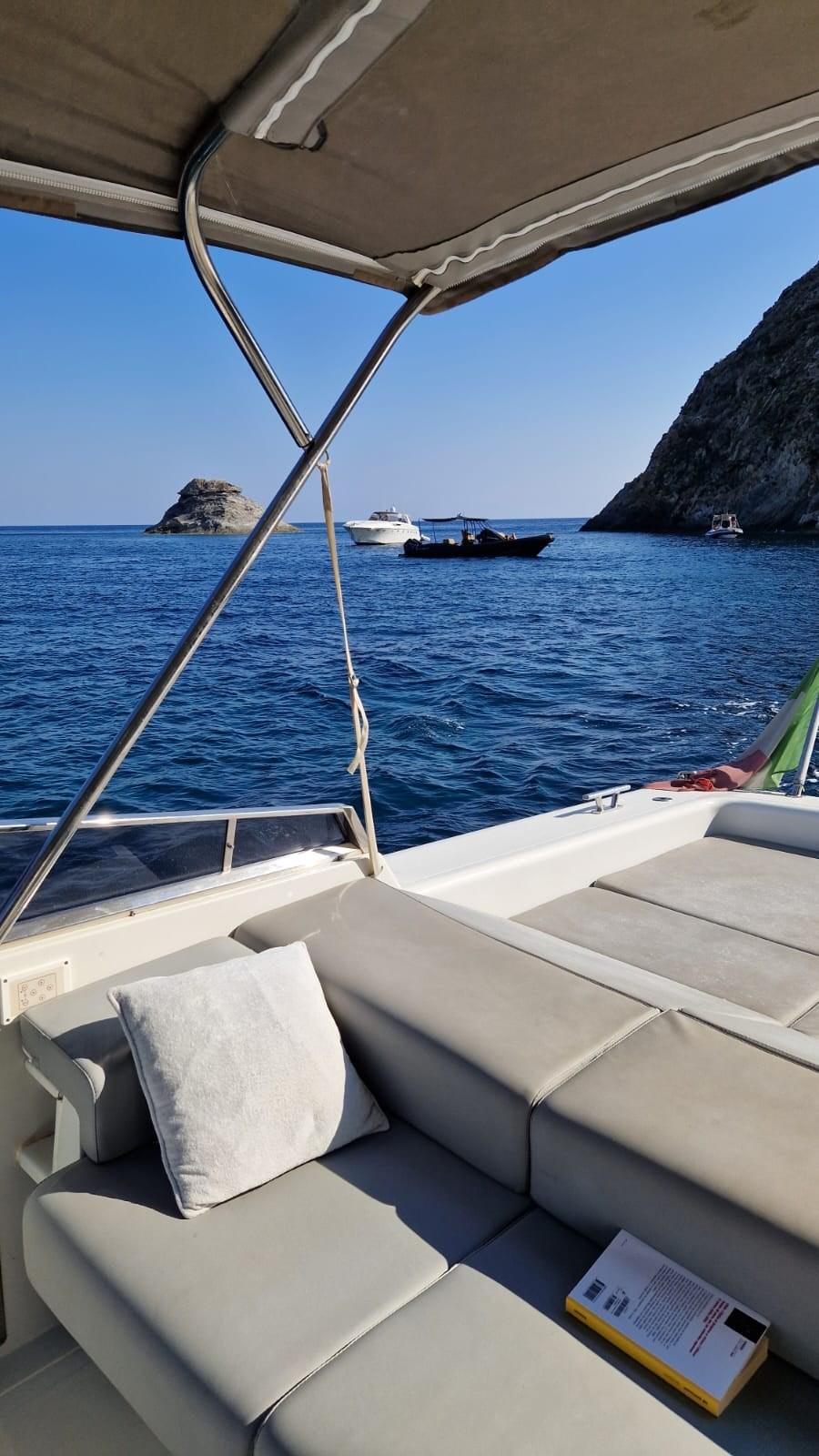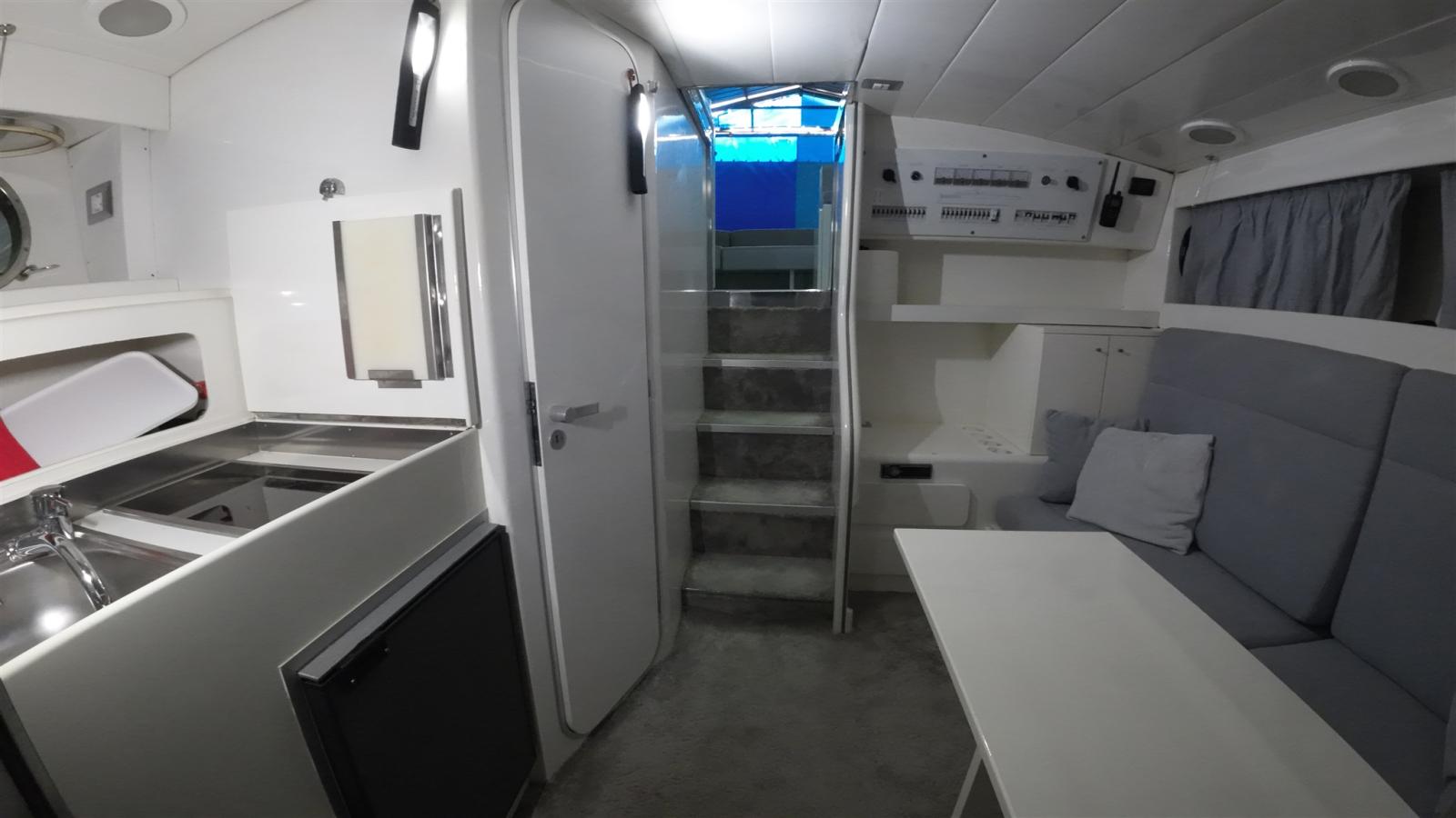 Eau sous pression, 4 Batteries (2024), Douche de cockpit, Spots sous-marins, Passerelle (idraulica), Prise de quai, Guindeau électrique, table de cockpit, Table pliante de salon.
