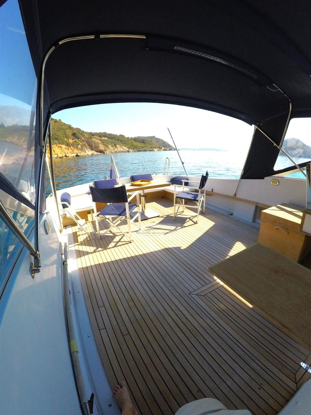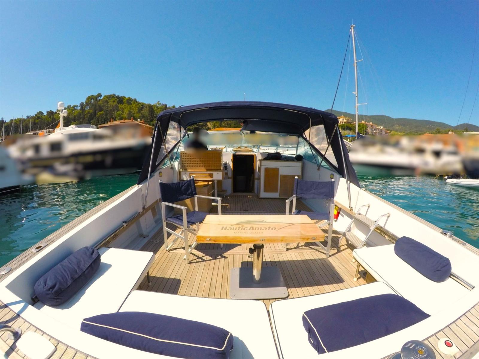 Ancre (acciaio inox), Ligne d'arbre de rechange, Eau sous pression, 4 Batteries, Douche de cockpit, 2 Flaps hydrauliques, Plateforme arrière, Pompe de cale automatique, Porte latérale, Cockpit en teck (2021), Prise de quai, Onduleur, Guindeau électrique, Echelle de bain, table de cockpit, Table pliante de salon, Winch électrique arrière.