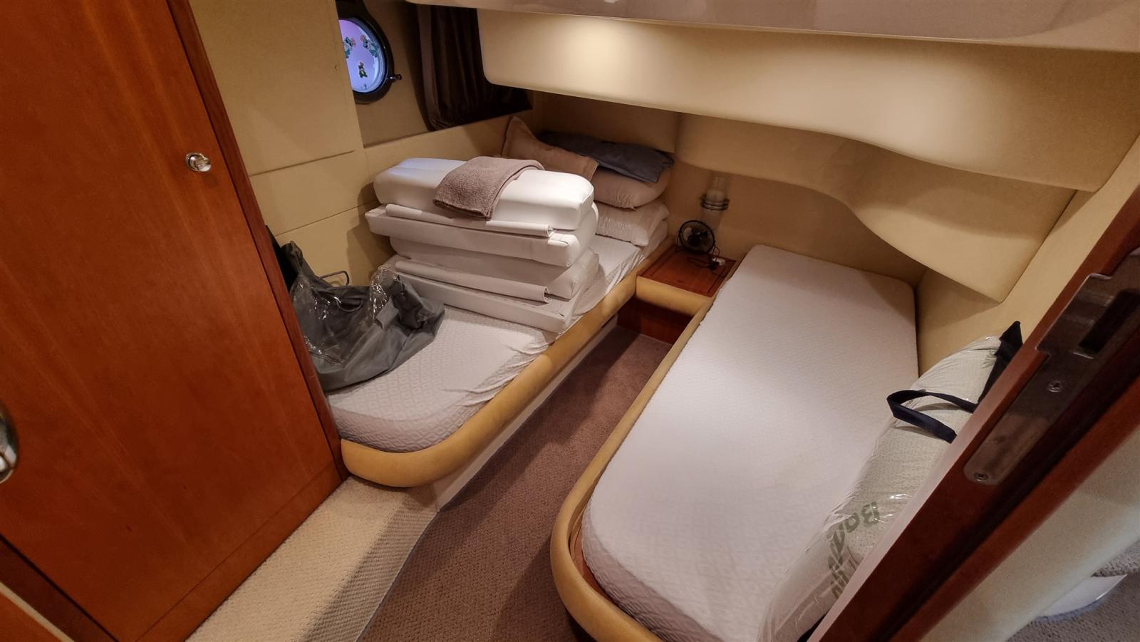 Phare de poursuite, Flaps hydrauliques, Éclairage de courtoisie, Passerelle (idraulica), Cockpit en teck, Guindeau électrique, table de cockpit, Winch électrique avant.