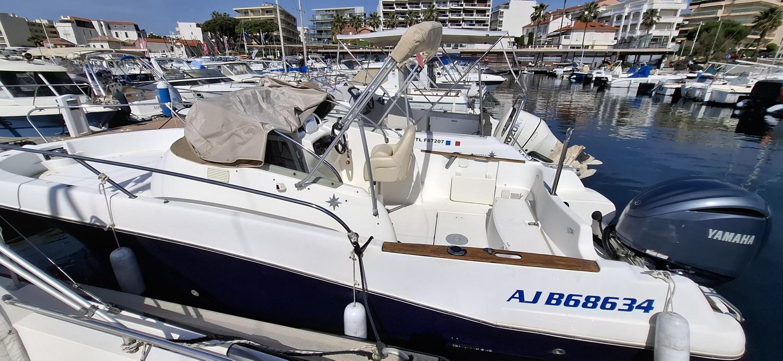 Bateau révisé et hiverné chaque année, en très bon état avec un moteur Yamaha 2022 avec seulement 47 H . L'ensemble est complètement révisé et prêt pour la saison 2025.