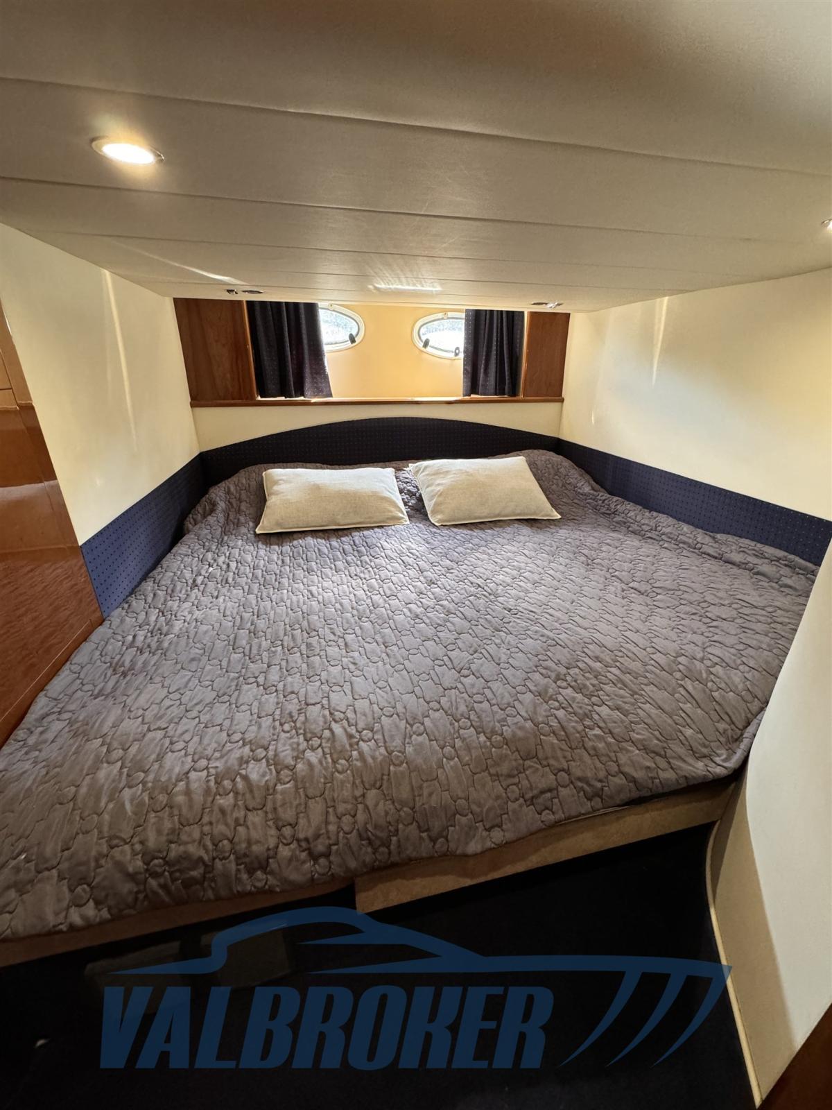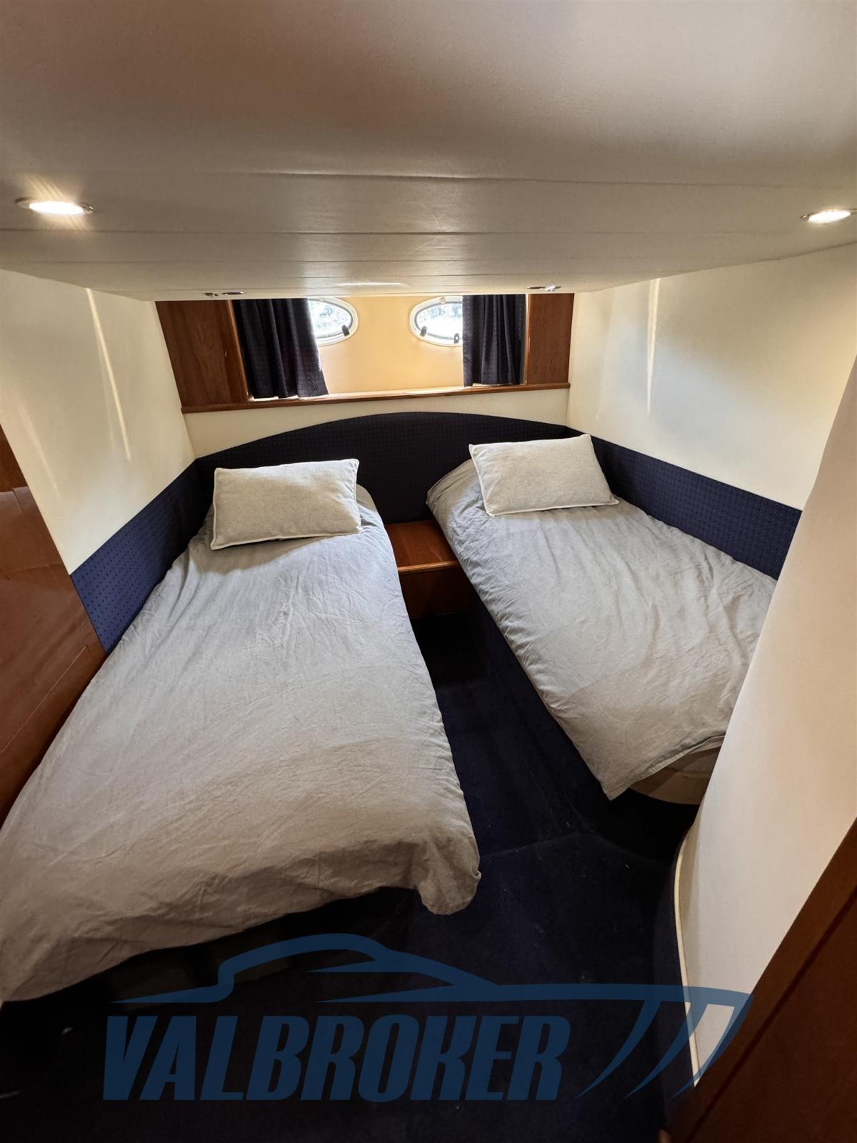 Toit rigide sportif avec deux cabines et deux salles de bains. Matériaux de haute qualité, il conserve sa valeur dans le temps. Enregistré pour la première fois en 2004. Possibilité d’échange avec des bateaux plus grands.