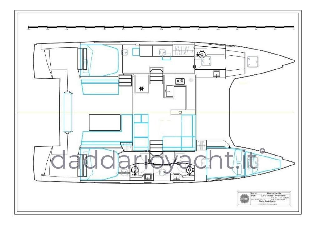 Version : 3 cabines et 3 salles de bain + 1 cabine externe pour l’équipage (lit uniquement).