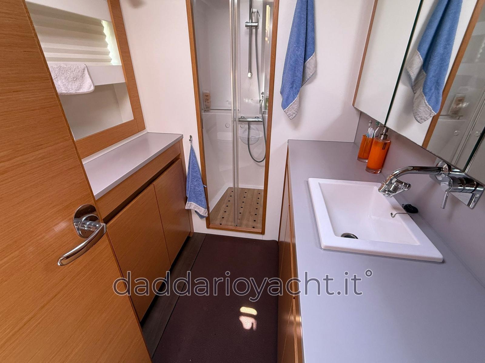 Alarme moteur, Ancre (DELTA 20KG+ 70MT CATENA DA 10mm), 2 Eau sous pression (UNA PER ACQUA DI MARE AL LAVANDINO), 7 Batteries (4X150Ah servizi + 2 MOTORI+ 1 GENERATORE), Chargeur de batterie (100A), Câble d’alimentation à quai, Couleur spéciale (WRAPPING GRIGIO), Douche de cockpit, Double barre à roue (CARBONIO), Bossoirs pour annexe, Éclairage de courtoisie (blu pozzetto e poppa), Spots sous-marins, Moteur d'annexe (YAMAHA 25CV PER TENDER), Défenses, 2 Pompe de cale électrique, Pompe de cale manuelle, Porte latérale, Cockpit en teck (FLEXITEAK), Prise de quai, Guindeau électrique, Gréement monotoron, 2 Echelle de bain, table de cockpit (teak 10pax), Table pliante de salon, 3 Winch électrique (POZZETTO DX+SX+DRIZZA RANDA).