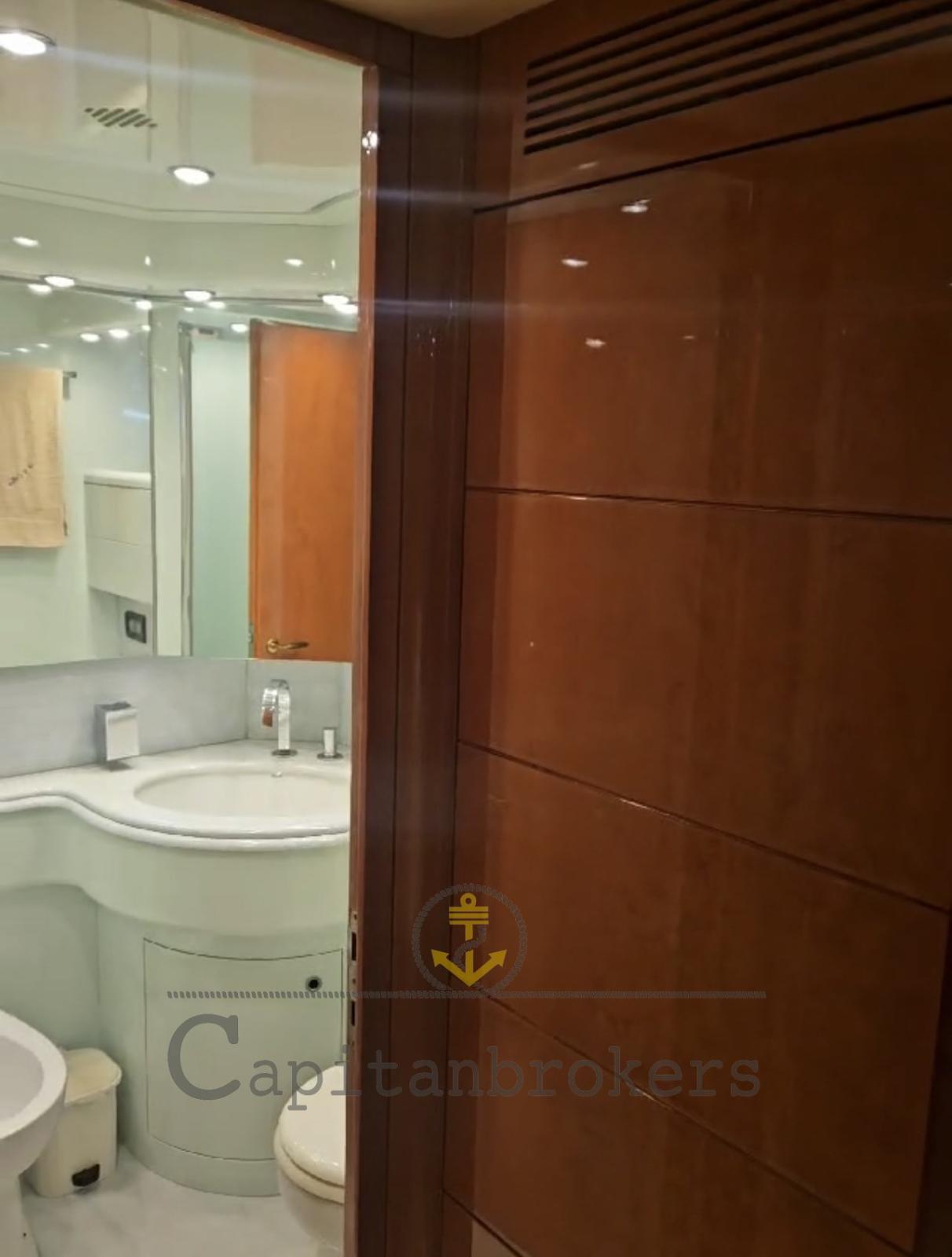 Mobilier intérieur en bois de cerisier laqué brillant en bon état général, Parquets avec moquette légère. Double salon avec canapés en cuir, 4 toilettes avec douche et bidet.