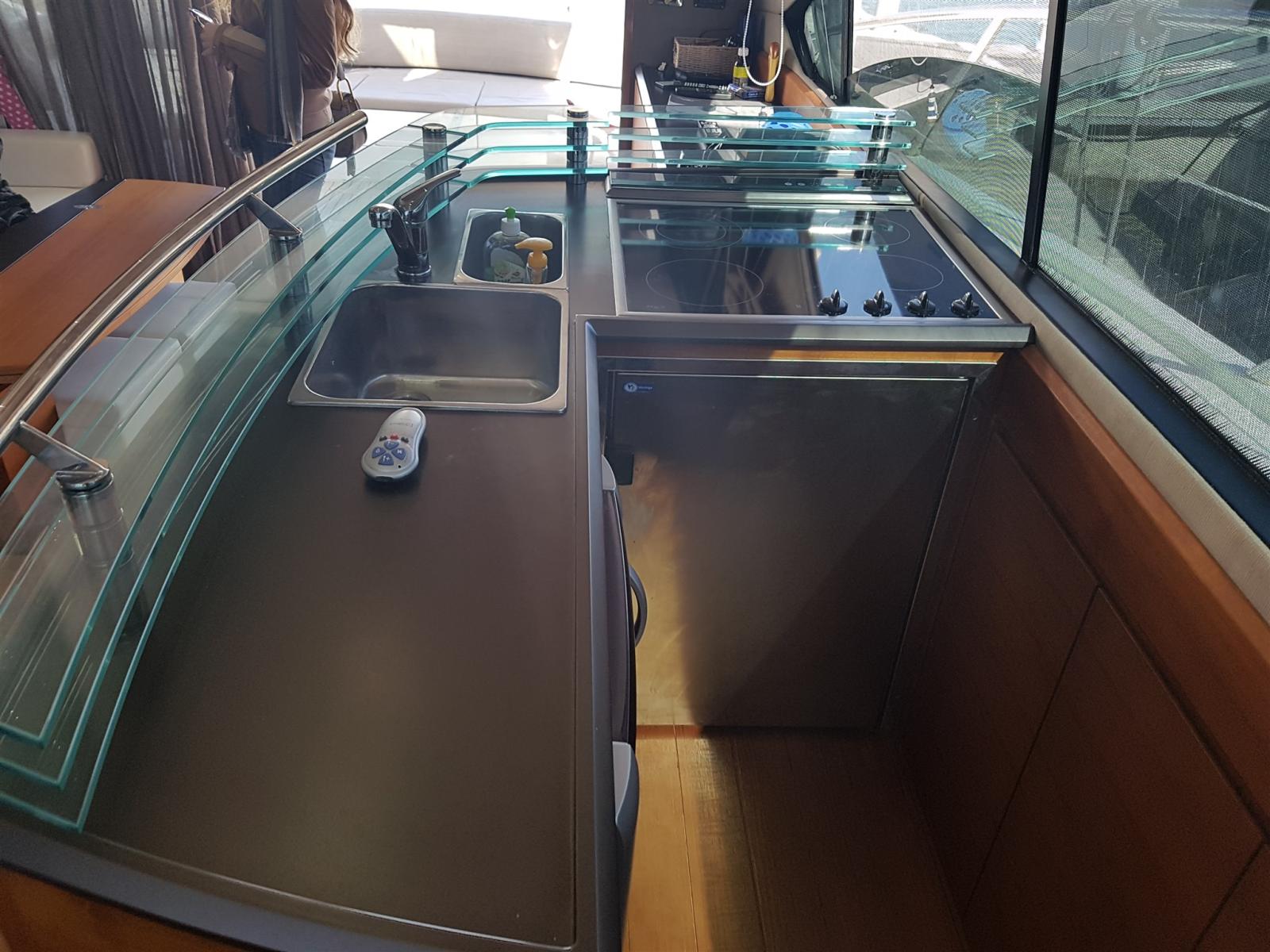 Alarme moteur, Eau sous pression, Passavant en teck, Douche de cockpit, Flaps hydrauliques, Éclairage de courtoisie, Passerelle (idraulica), Plateforme arrière, Pompe de cale automatique, Porte latérale, Cockpit en teck, Prise de quai, Connexion eau sous pression à quai, Onduleur, Rollbar, Guindeau électrique, Echelle de bain, Corne, Winch électrique arrière, Winch électrique avant.