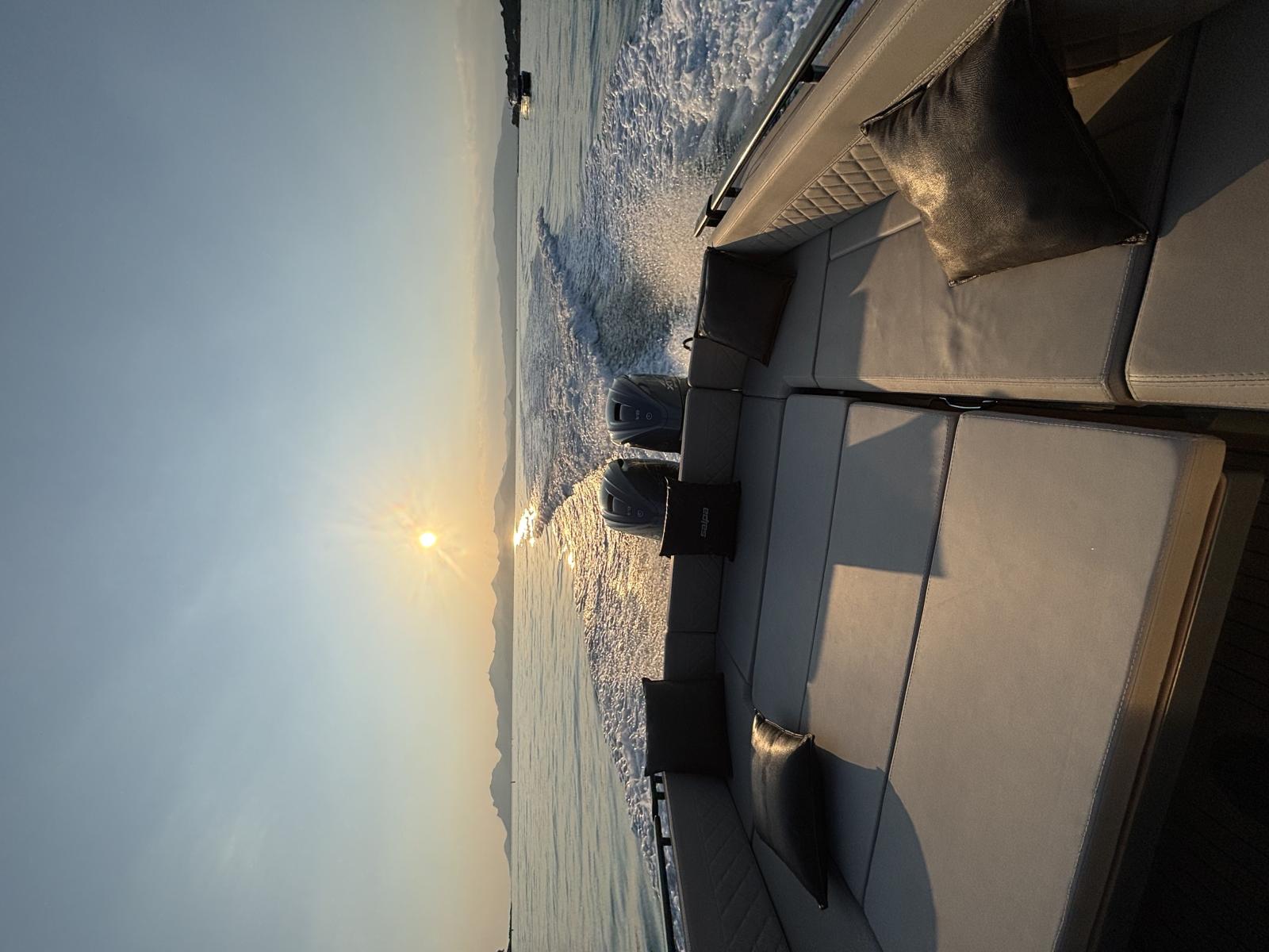 Immense bain de soleil à l’avant avec deux transats intégrés