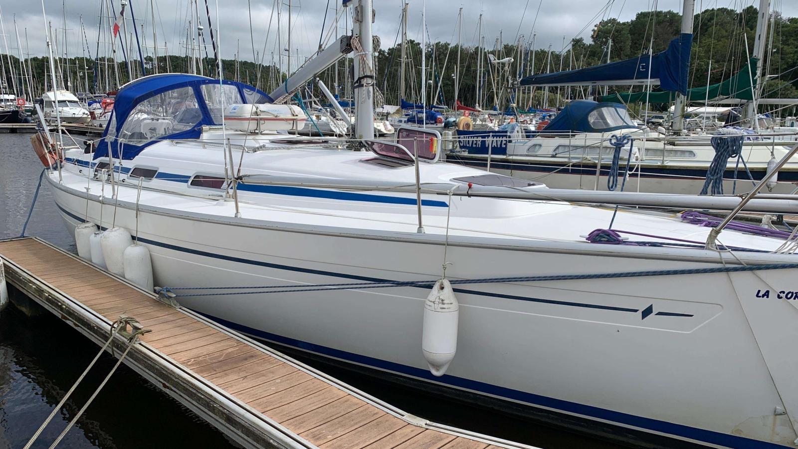 Voilier Bavaria 36 (2004) – Version 3 Cabines : Le Bavaria 36 est un voilier de croisière fiable et robuste, idéal pour des croisières en famille. Cette version 3 cabines offre un grand confort avec une grand-voile sur enrouleur et un faible tirant d'eau. Entièrement entretenu depuis 2015 par son 3ème propriétaire, il est équipé de panneaux solaires, d'un pilote automatique récent et de matériel hauturier. Avec ses 11,40 mètres et son moteur Volvo de 21 kW, ce Bavaria 36 est en bon état. Le bateau a été expertisé fin mai 2025 et atteste que l'unité est en bon état de construction et navigation. Le voilier Bavaria 36 est un monocoque habitable de croisière, construit par le chantier Bavaria Yachts en Allemagne. Ce voilier, doté d'une quille fixe et gréé en sloop en tête, a été réalisé par l'architecte naval J&J Design. Il est réputé pour sa robustesse, sa fiabilité et ses performances en mer.Ce Bavaria 36, version 3 cabines, Grand voile sur enrouleur, Petit tirant d'eau, offre un confort optimal pour les croisières en famille ou entre amis. Historique et Entretien :3ème propriétaire depuis 2015, ce voilier a toujours été entretenu avec soin.Historique depuis sa mise en service.Moteur entretenu par des professionnels et révisé régulièrement.Voiles révisées.Gréement d'origine contrôléEquipements :Grand voile sur enrouleurGénois sur enrouleurSpi symétriqueTourmentinÉquipements hauturiersPanneaux solaires : 200W, 3 MPPTParc batterie important : 2x140 Ah (service) + 2 batteries moteurBossoiresAnnexe avec moteur Tohatsu 2,5 CVRadarAISMoteur de pilote automatique récentCaractéristiques Techniques :Longueur hors-tout (LOA) : 11,40 mLongueur de coque (LH) : 10,96 mLongueur à la flottaison (LW) : 9,39 mLargeur maximale (B max) : 3,59 mTirant d'eau : 1,60 Motorisation :Moteur Diesel : Volvo MD 2030, 21 kW (environ 750 heures)Refroidissement : Indirect (eau de mer/eau douce)Inversion et réducteur : Saildrive 120S-DHélice : Hélice fixe à 2 pales (option hélice repliable)A prévoir :Remplacement du joint de Saildrive (selon préconisations constructeur)Ce Bavaria 36 est idéal pour des aventures en mer en toute sérénité. Il allie confort, sécurité et performance, faisant de lui le choix parfait pour les passionnés de voile.Pour plus d'informations ou pour organiser une visite, veuillez me contacter.