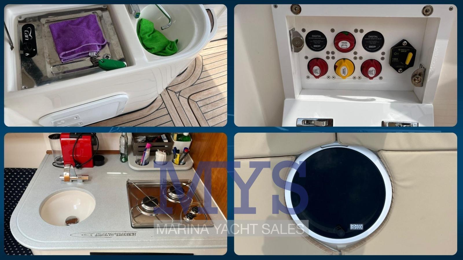 Manò Marine 25 Cruiser – Confort et polyvalence à 8,25 mètres. Bateau parfait pour les excursions d’une journée ou les mini-croisières, le Manò Marine 25 Cruiser allie sportivité, confort et espaces bien organisés. Il offre une grande habitabilité à la fois sur le pont et sous le pont. Extérieurs fonctionnels avec grand bain de soleil à l’avant, cockpit spacieux avec table, sièges et cuisine extérieure (évier et cuisinière), ainsi qu’une plate-forme de bain confortable avec échelle. Intérieurs avec cabine double à l’avant, salle de bain séparée avec toilettes et lavabo, deuxième espace de couchage au milieu du navire et petite kitchenette. Idéal pour ceux qui recherchent un bateau maniable, sûr et confortable. En particulier, ce modèle a effectué un REFIT PRESQUE TOTAL EN 2024 (voir détails dans la description) des systèmes, moteurs, extérieurs et intérieurs... le bateau est pratiquement NEUF.