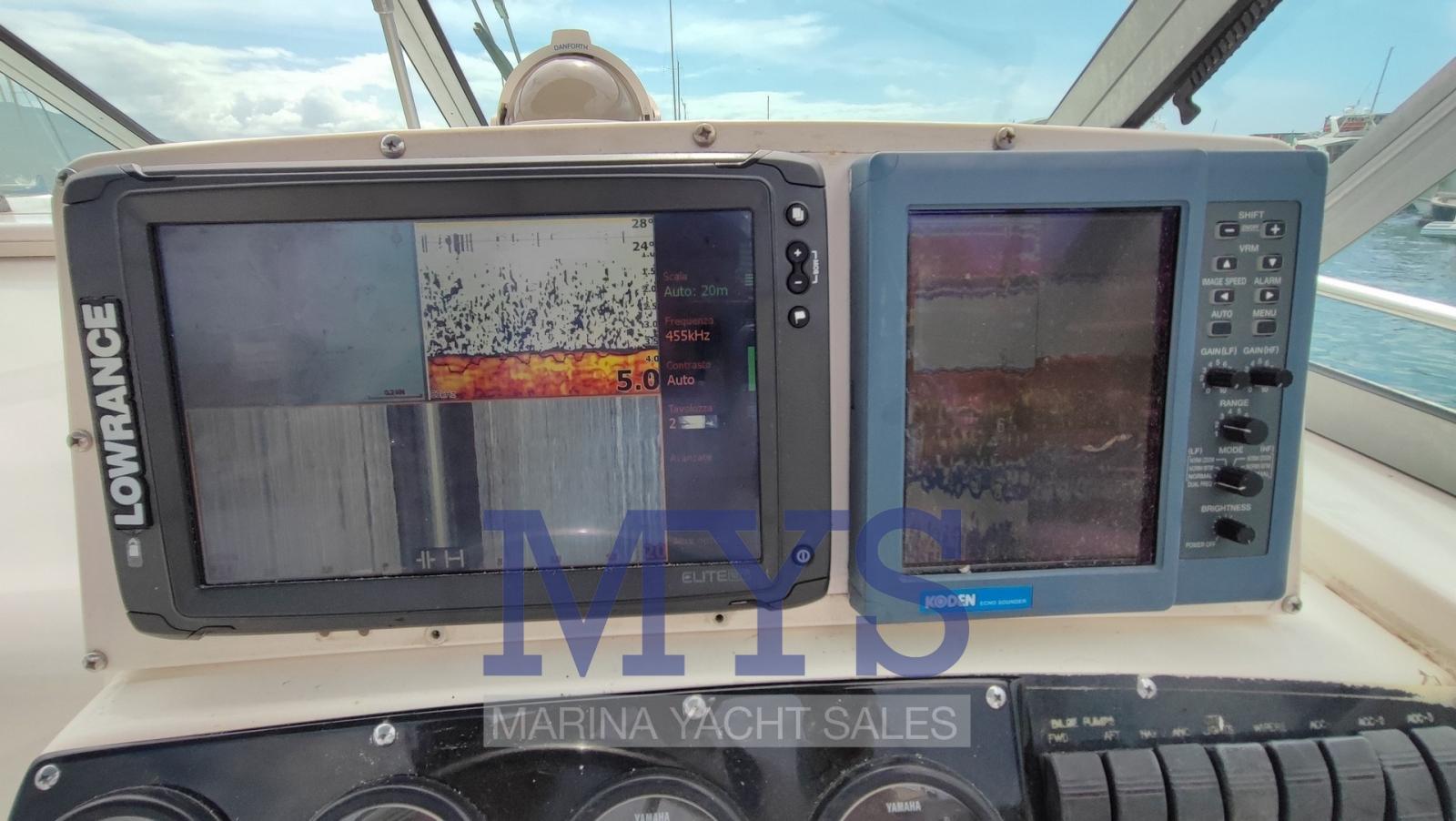 Ordinateur fixe de bord, DSC VHF (Icom M421), Sondeur pêche (Koden- professionale), GPS (con Eco Lawrance Elite 12 Pollici 2022), Pilote automatique (Simrad - funziona senza schermo), Siège copilote.