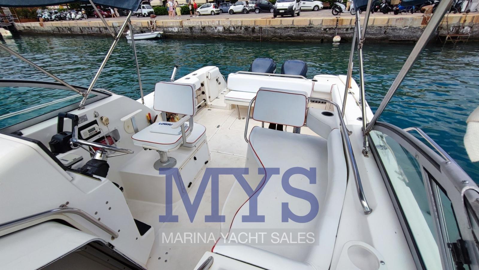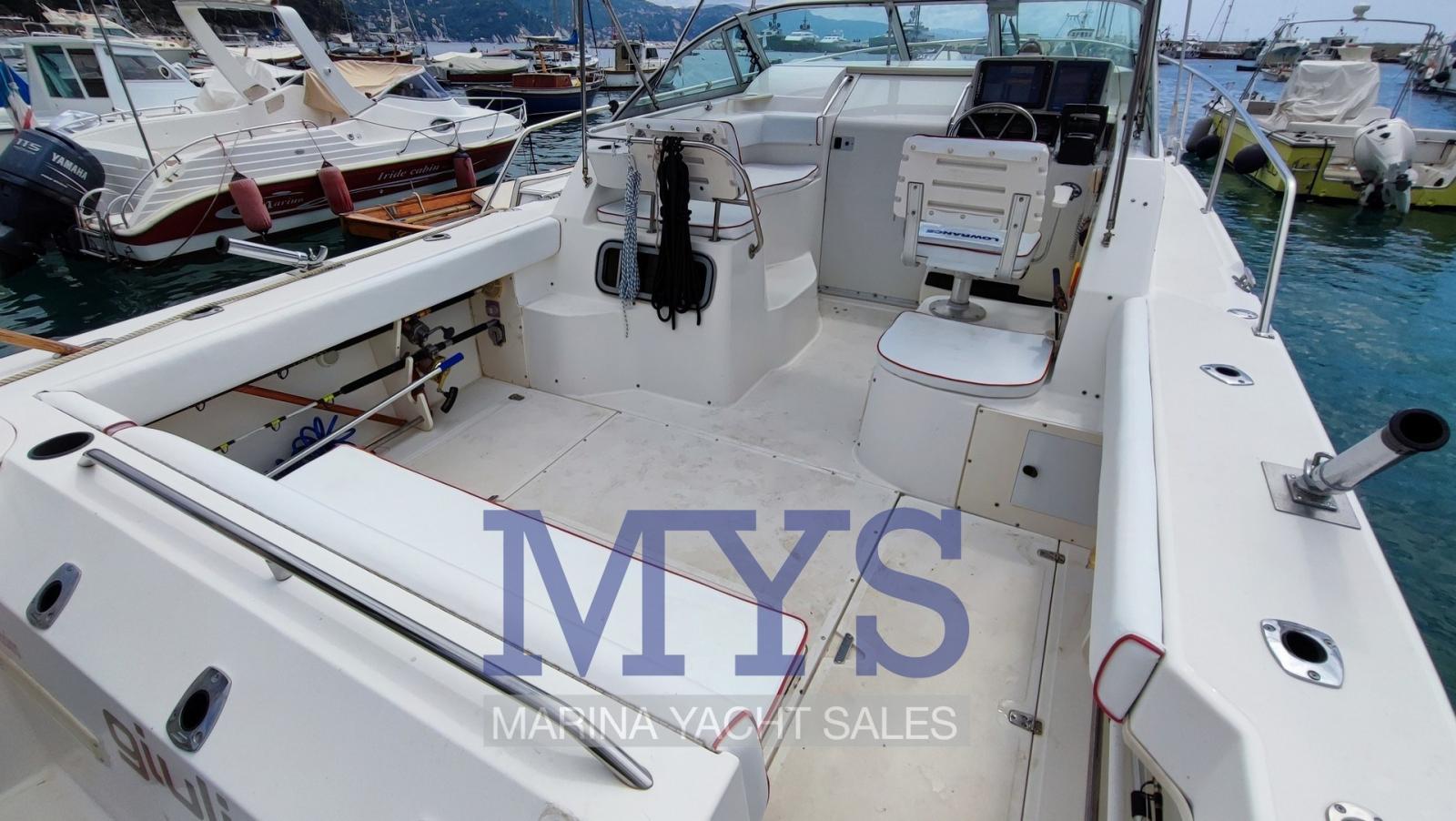 Alarme moteur, Alarme de pompe de cale, Ancre (Bruce + 50 mt di catena), Eau sous pression (2022), 3 Batteries (x 100 Ah - 2022), Système de vidange, Flaps hydrauliques, Éclairage de courtoisie, Plateforme arrière, Porte latérale, Prise de quai, Table pliante de salon, Corne.