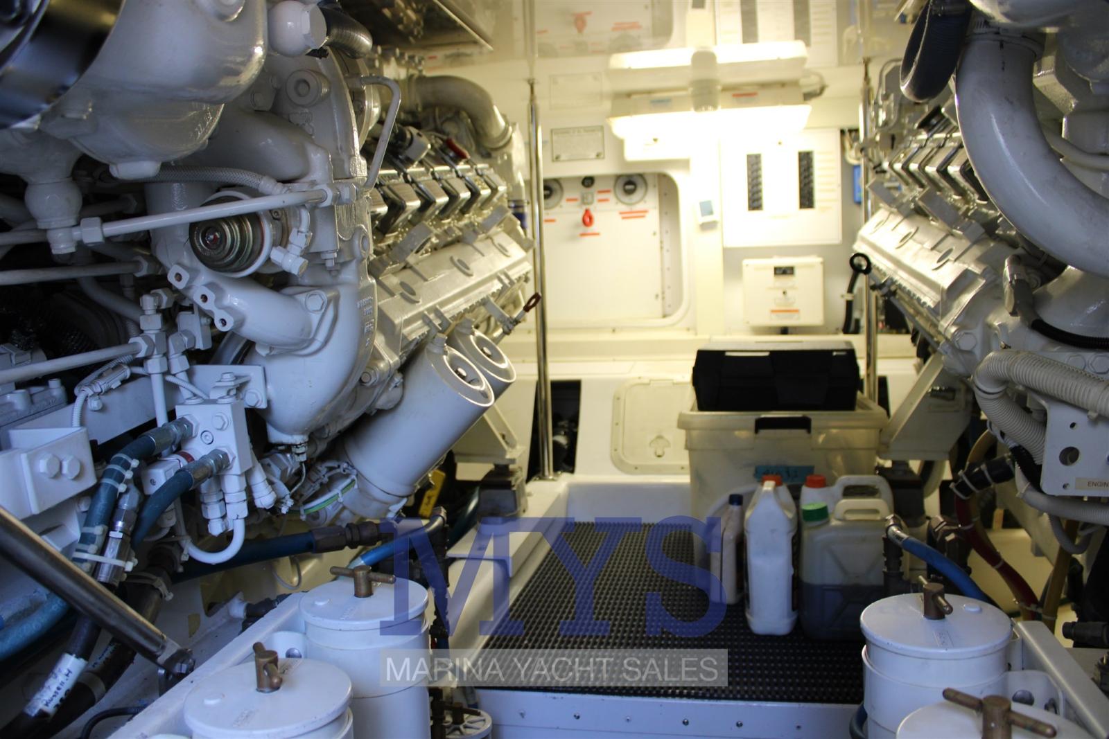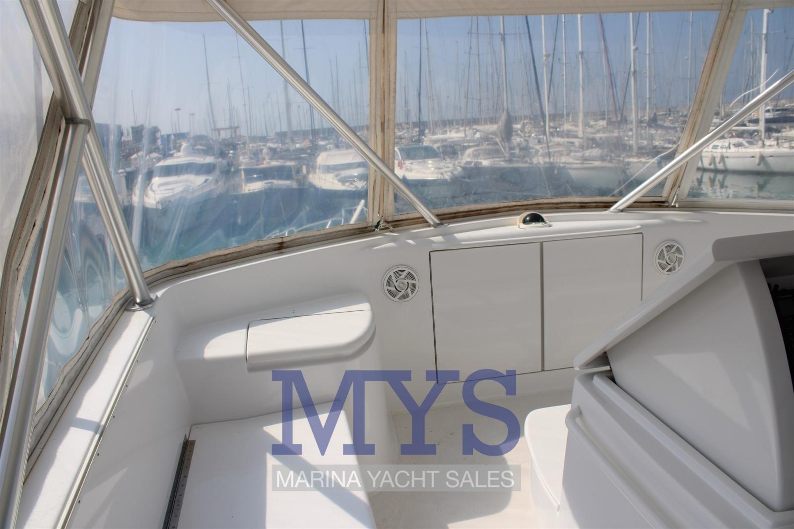 Alarme moteur, Alarme de pompe de cale, Alternateur, Eau sous pression, Taquets pliants, Douche de cockpit, Phares fixes arrière, Phare de poursuite, Flaps hydrauliques, Extincteur(s) fixe(s), Indicateurs de flaps, Lavage de chaine, Lavabo dans le cockpit, Éclairage de courtoisie, Spots sous-marins, Passerelle, Plateforme arrière, Pompe de cale automatique, Porte latérale, Prise de quai, Connexion eau sous pression à quai, Onduleur, Guindeau électrique, Echelle de bain, Système de filtration des eaux usées, Corne, Winch électrique arrière, Winch électrique avant.