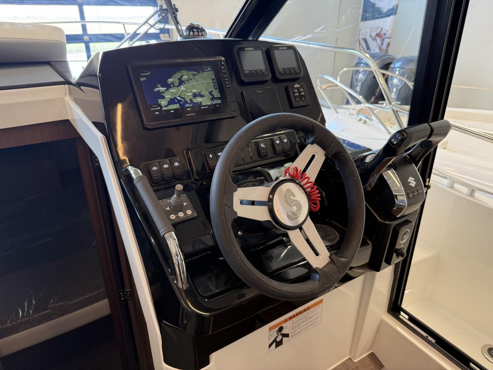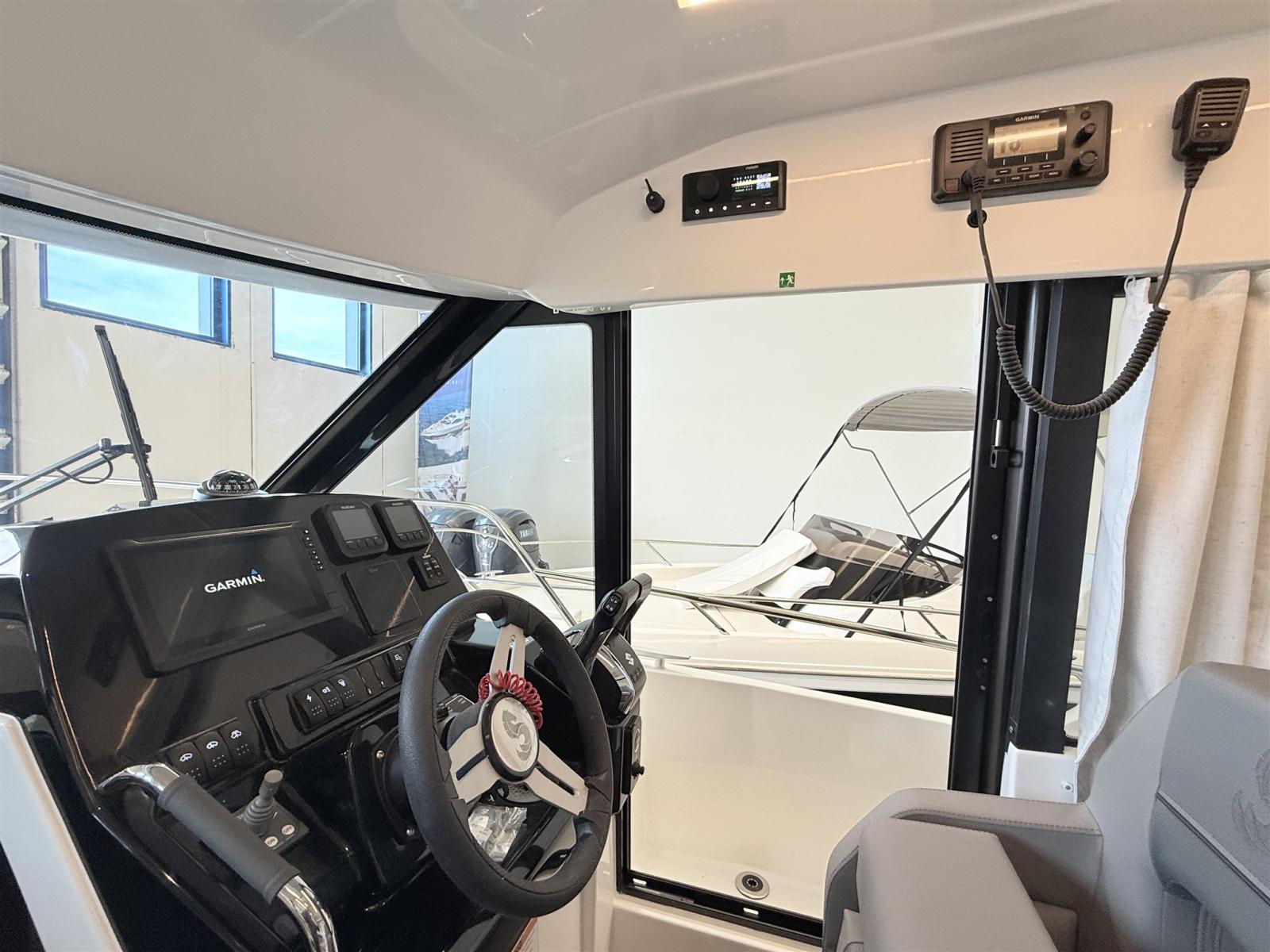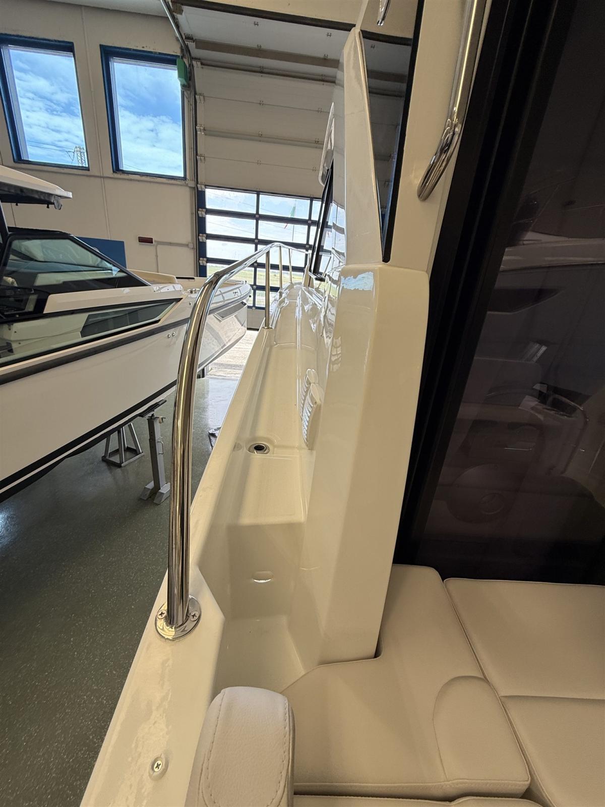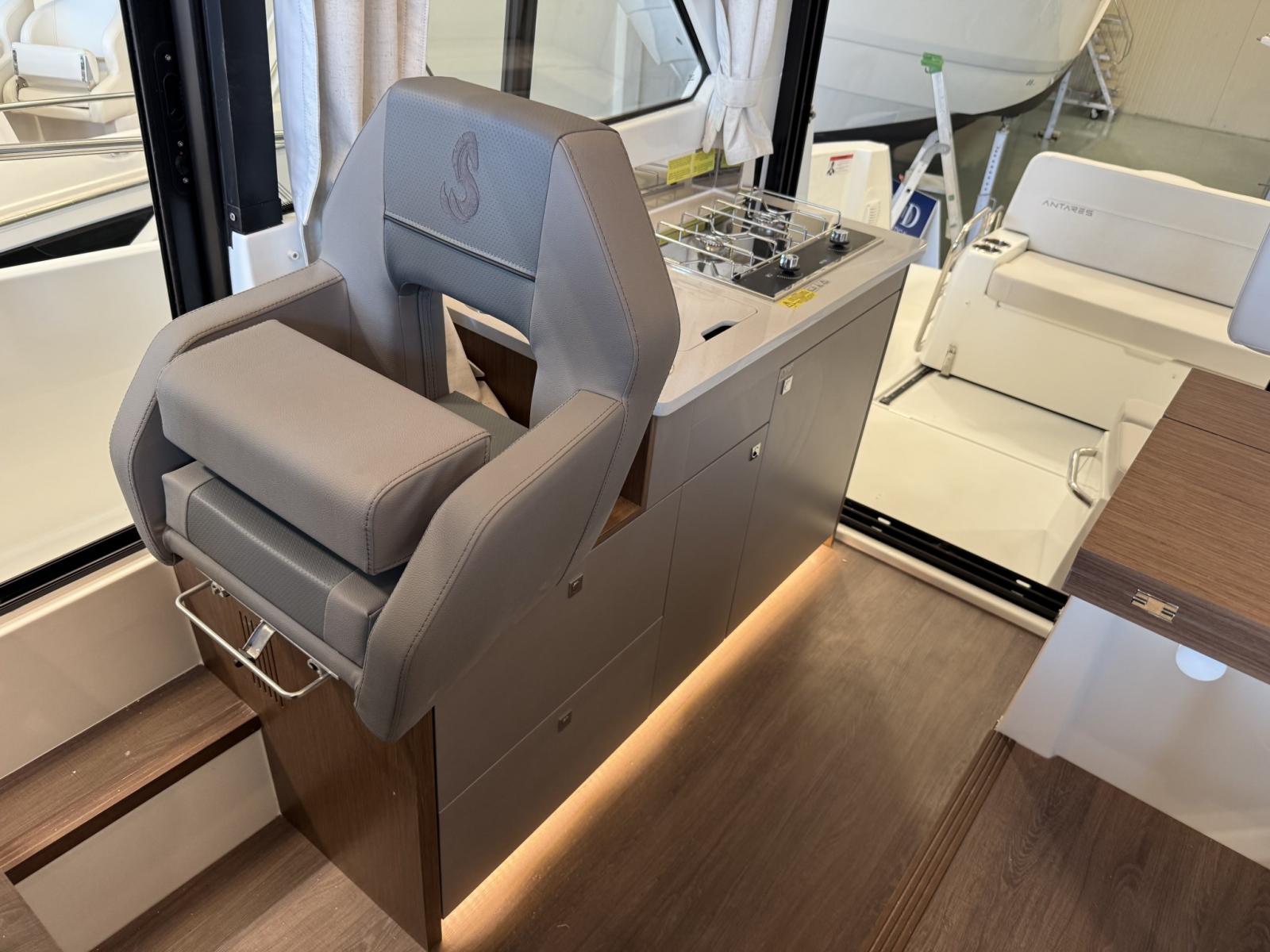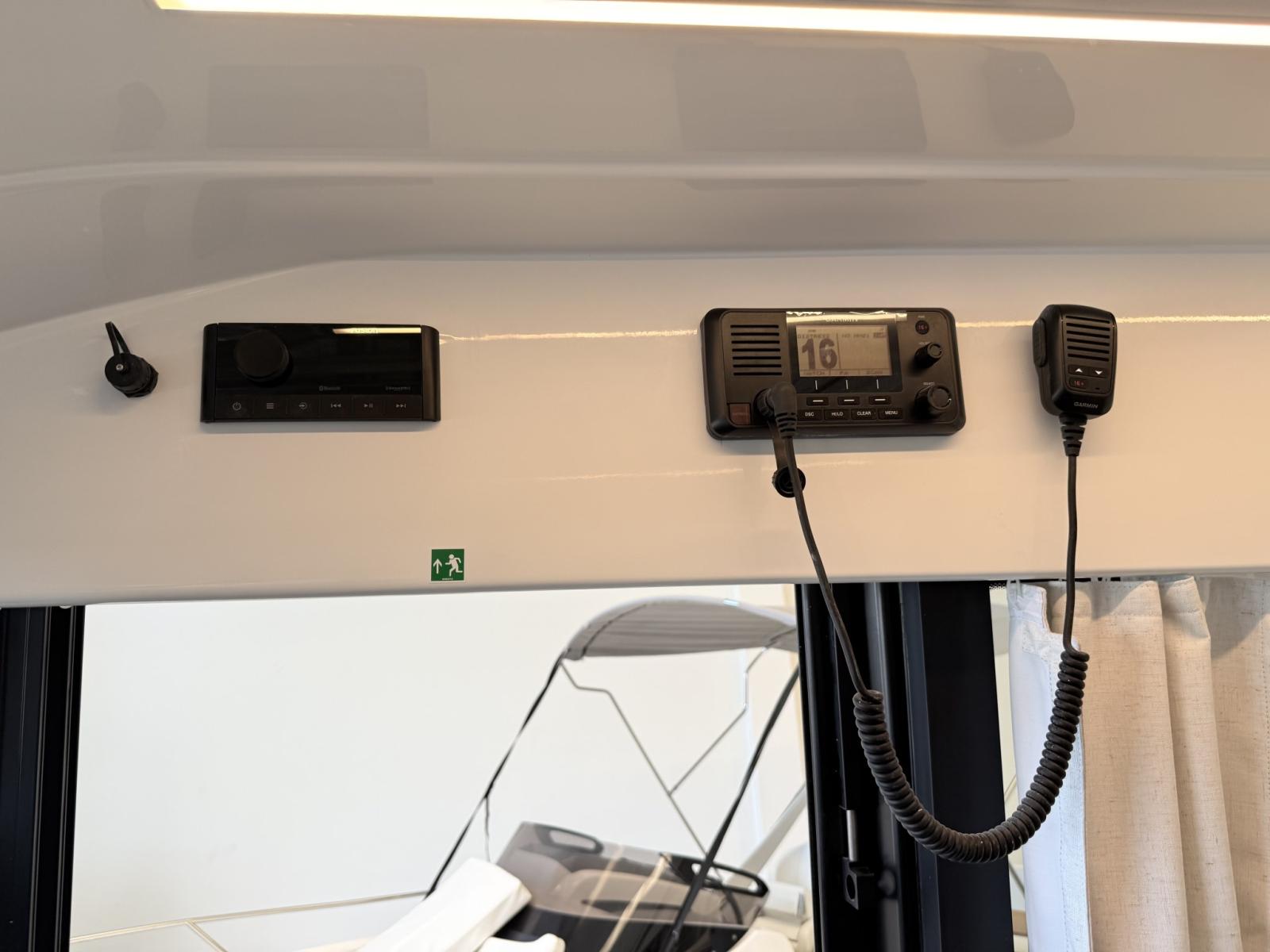 Alarme moteur, Eau sous pression, Douche de cockpit, Flaps électriques, Indicateurs de flaps, Éclairage de courtoisie, Plateforme arrière, Pompe de cale manuelle, Porte latérale, Prise de quai, Guindeau électrique, Echelle de bain, table de cockpit, Table pliante de salon, Corne.